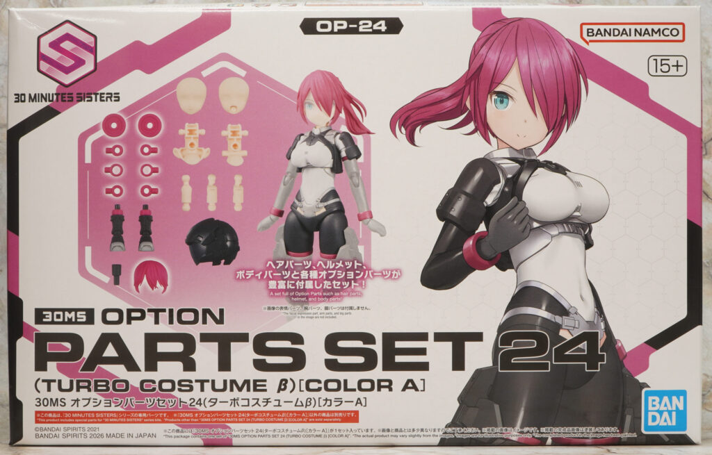 バンダイの美少女プラモデル「30 MINUTES SISTERS」より、ヘアスタイルやボディがワンセットになった「オプションパーツセット24(ターボコスチュームβ)[カラーA]」が登場しましたのでレビューしたいと思います!