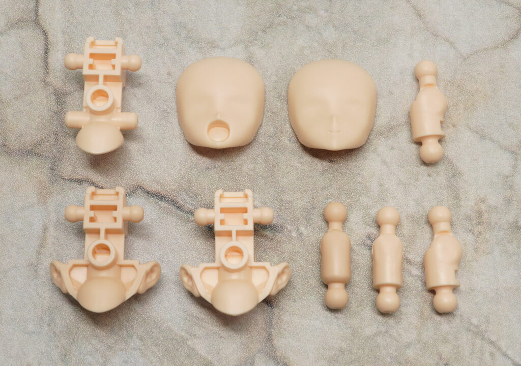 無地の表情パーツが2種と頭部基部パーツ、首関節が縦横可動それぞれ2つずつ付属。