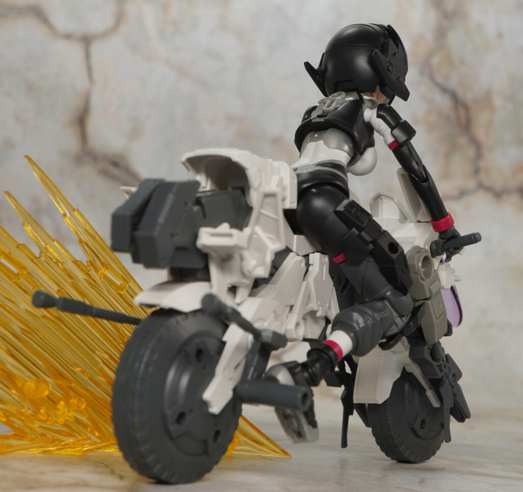 こちらが完成した【30MS】オプションパーツセット24(ターボコスチュームβ)[カラーA]です。以前登場したターボコスチュームαと同系統のオプションボディで、バイクやスケボーなどが似合うスポーティーな装いのコスチューム。
