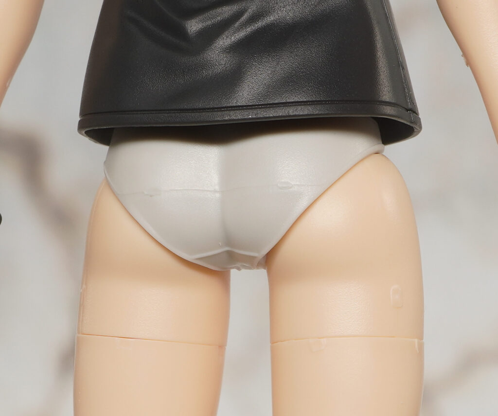 スカートをパカっと割ってヒザから下を取り付ける構造で、パンツも造形されてますが太ももと一体物です。