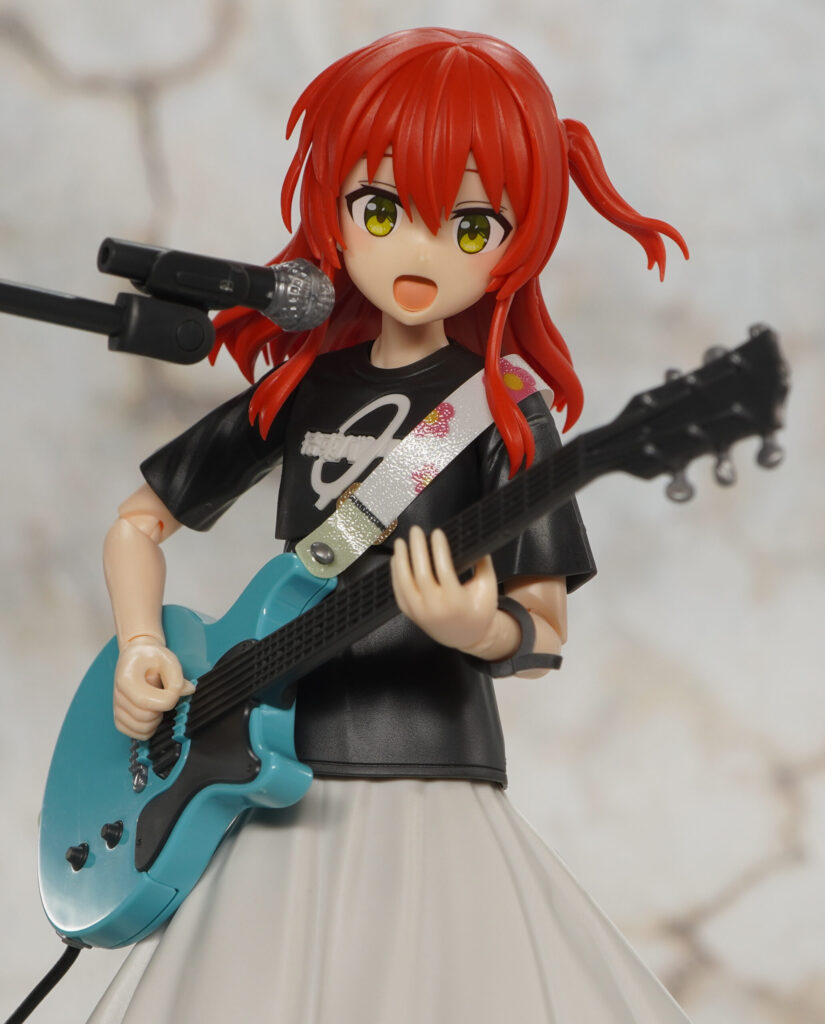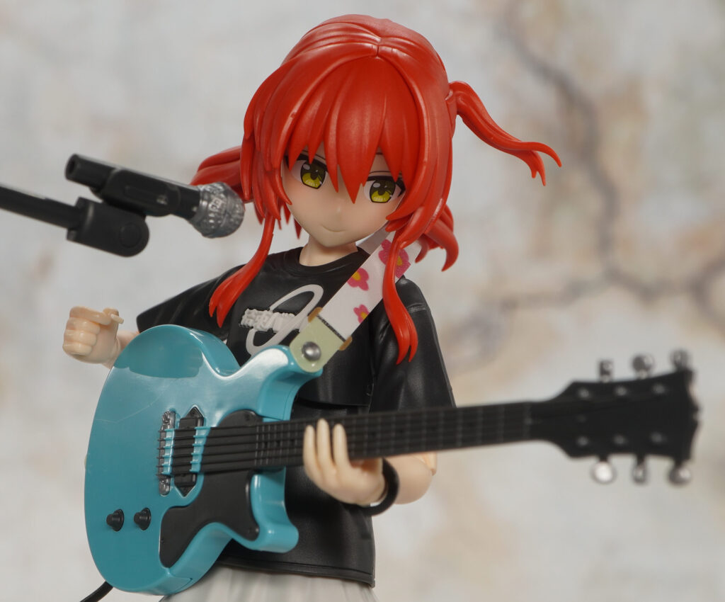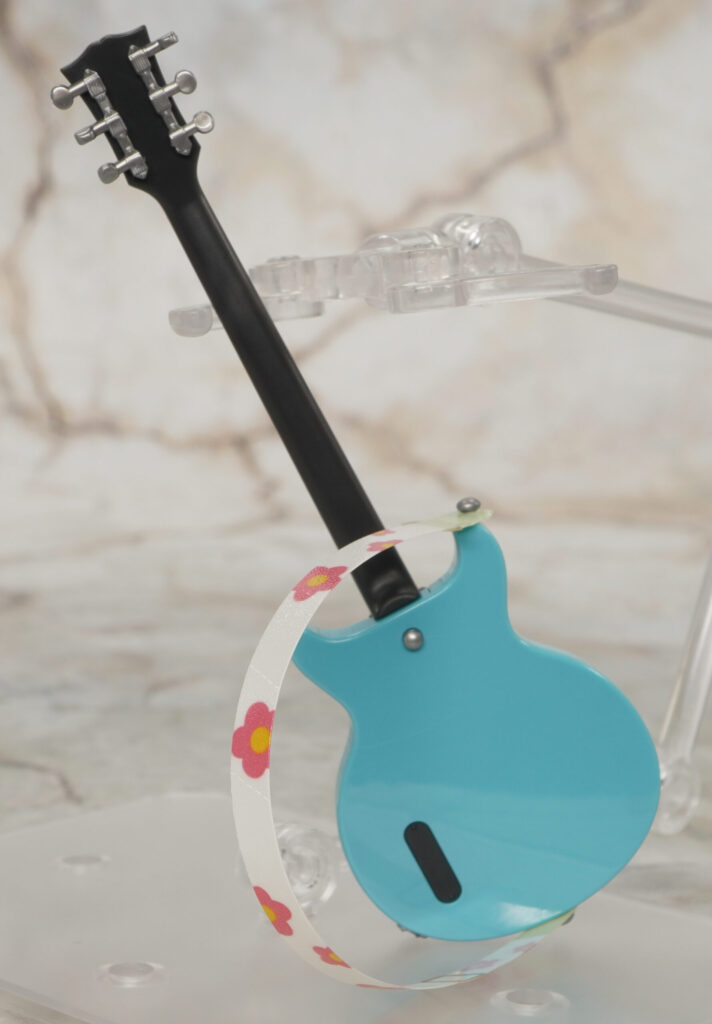 リョウから借りてるギターは水色部分がツヤありでペグは金属色で造形されており、ギターストラップはぼっちちゃんと同じくPETシートで再現。