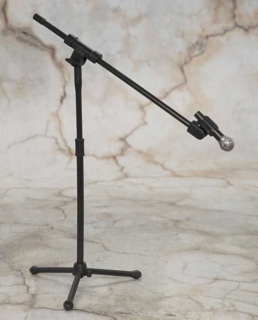 マイクスタンドは高さは調節できませんが、前後方向に動き角度を調節可能。