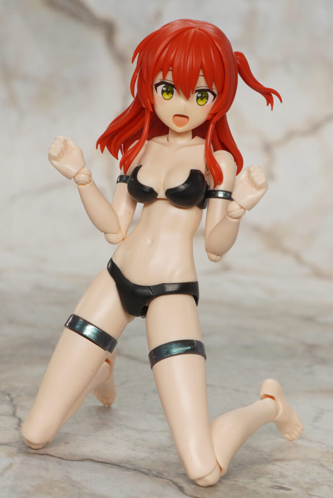 こちらが完成した【30MP】喜多郁代(きたいくよくるよ)です。「ぼっち・ざ・ろっく!」に登場するエナドリ片手に踊り狂う陽キャパリピバンド”結束バンド”のギターボーカル兼SNS担当大臣の喜多ちゃんを”30 MINUTES PREFERENCE”ブランドでプラモデル化した物。