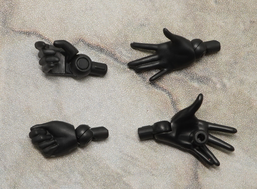 ハンドパーツは握り手、平手、持ち手と、左手用の軸ピン付き平手が付属。