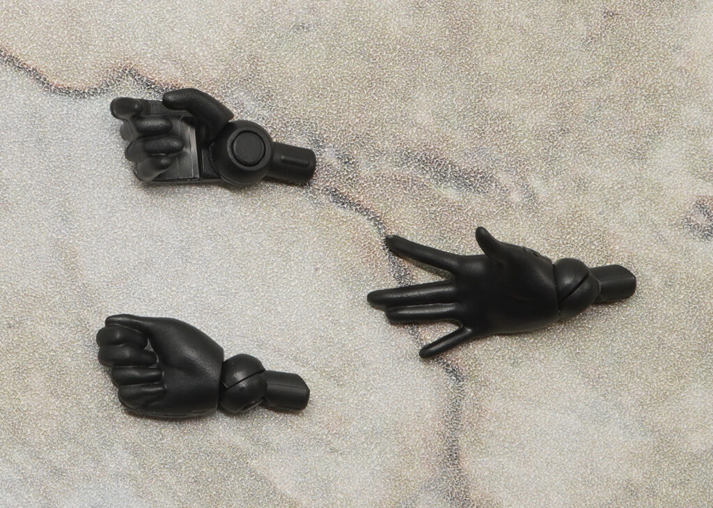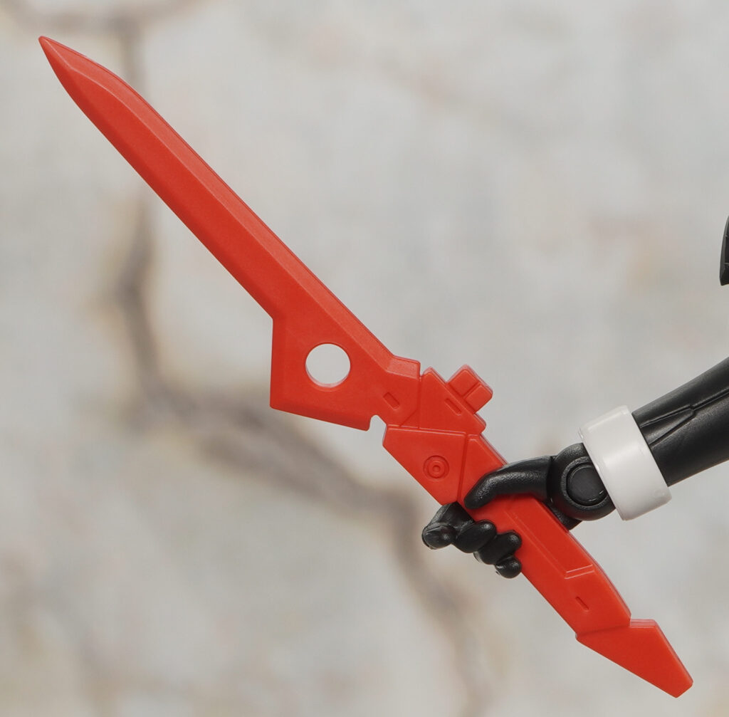 付属品は表情パーツ×3種、ハンドパーツ×3種、アームドモード一式、ナイフ×2、リングジョイント一式、スタンドジョイントです。