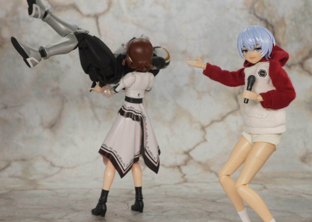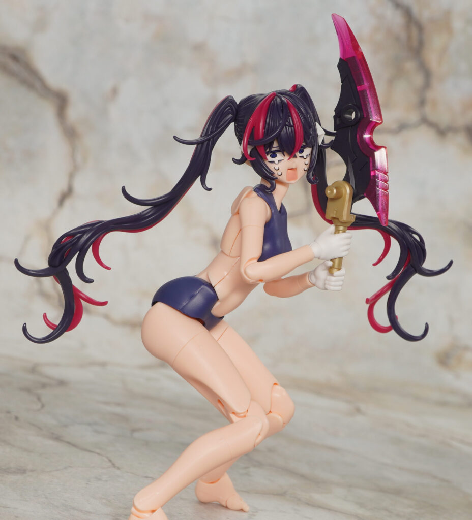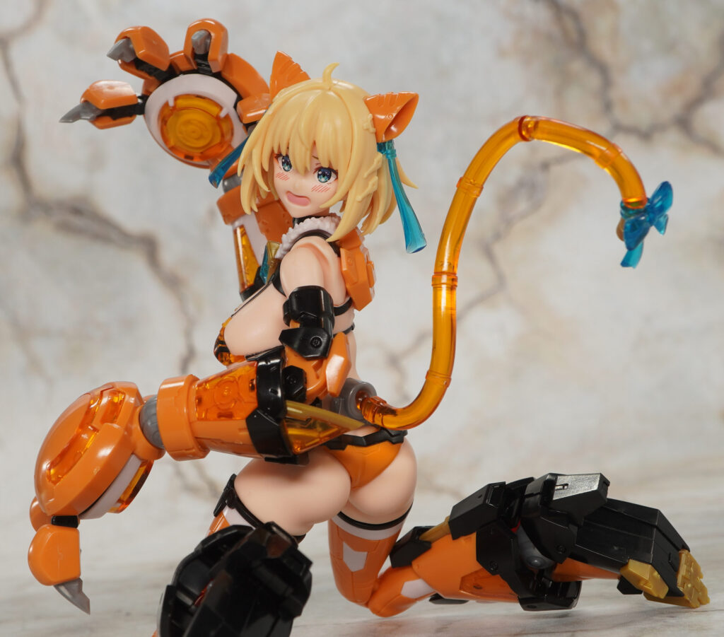 マガツキ素体は可動範囲も広く、こちらのキャットアーマーは髪型がショートヘアになってるのでロングヘアよりもアクションし易くなってます。