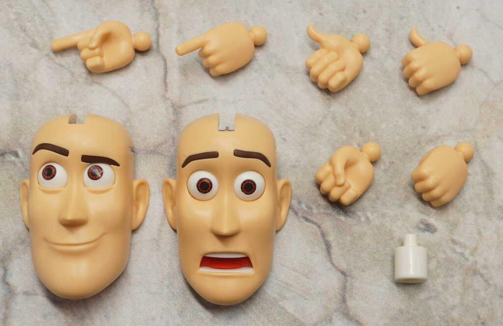 付属品は表情パーツ×3種、ハンドパーツ×4種、スタンドジョイントです。
