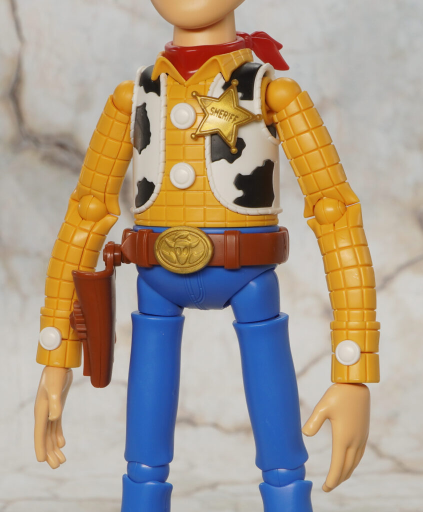 カウボーイバッジなどの装飾や牛柄ジャケットはパーツ分割で色分けされており、黄色いシャツは深めのモールド(シェーディングモールド?)の陰影でチェック柄が再現されているぞ!