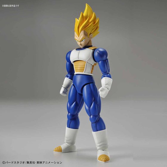 こちらが完成した【Figure-rise Standard】超サイヤ人ベジータになります。ドラゴンボールに登場するサイヤ人の王子で、こちらは超サイヤ人(スーパーサイヤ人)となった状態での立体化となります。今回は素組の状態になります。