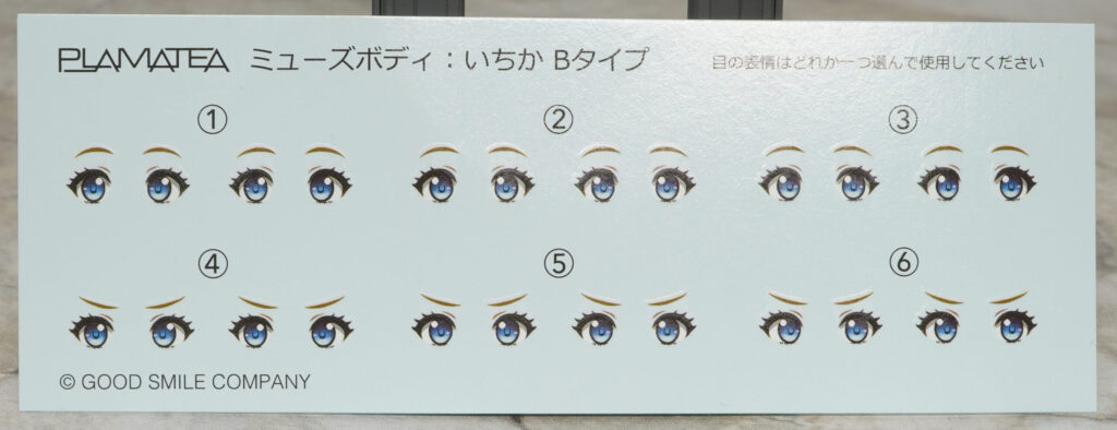 印刷済の表情が1つと、口元の形状が異なるデカール貼付け用が2種類付属。