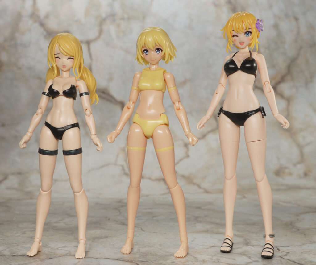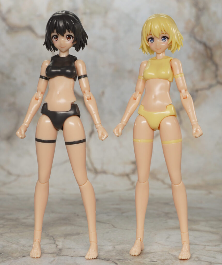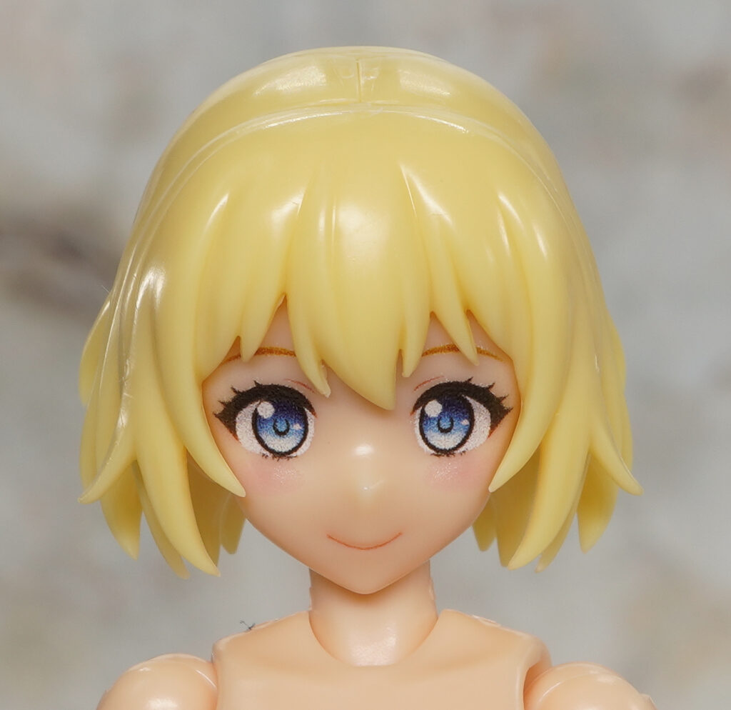 本来は他メーカー美プラの頭部を取り付けるのを想定していないかもですが、首関節を交換してバンダイのカラーBやコトブキヤのスキンカラーCキャラの頭部を取り付け。