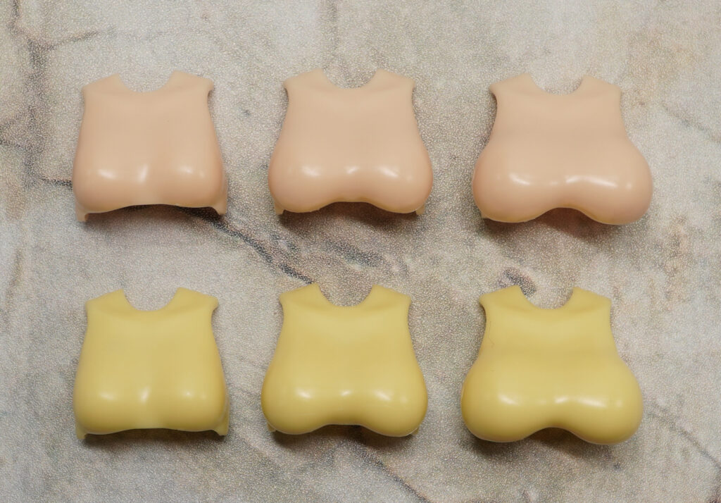 ボインは大中小3サイズの2色、首関節は他のPLAMATEAやチトセリウム、30MSやFAガール、創彩少女庭園、メガミデバイスなどの頭部を取り付けられる4~6mmの3サイズが付属。
