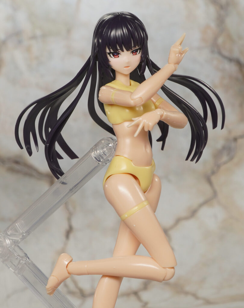こちらが完成した【PLAMATEA】ミューズボディ:いちか Bタイプです。グッスマのプラマテアブランドでプラモ化された、付属のオプションや関節構造など全体的に簡素にまとめられた安価で組み立て易さ重視な美少女プラモデル素体。