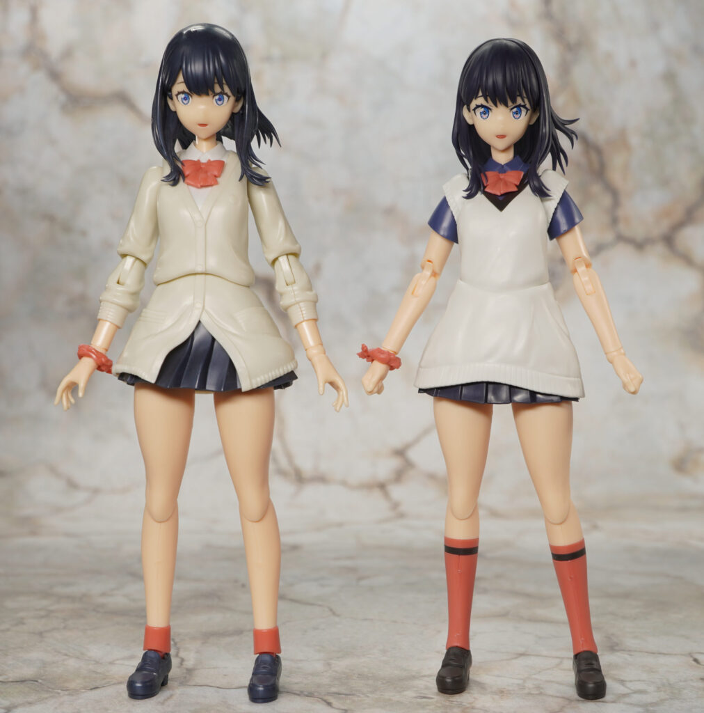 ロングヘアやポニーテール、カーディガンに白シャツと、組合せをいろいろ変えることができる可動式プラモデルとして立体化されました。