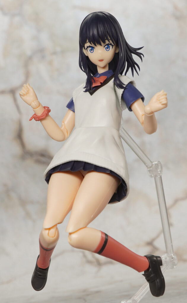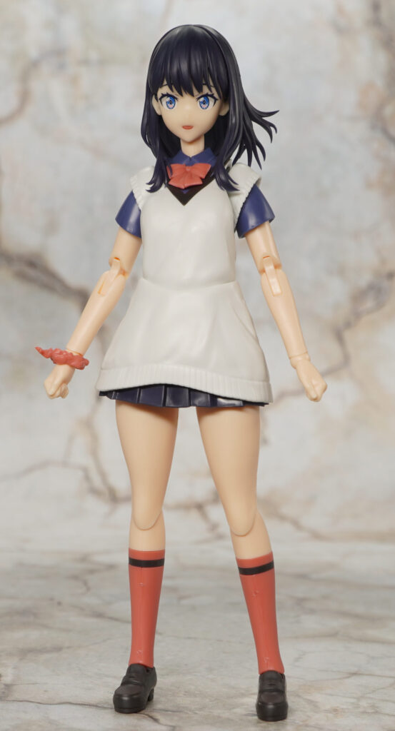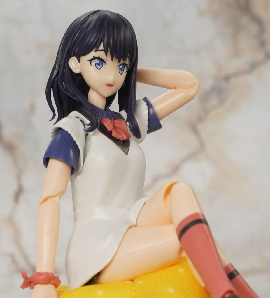 こちらが完成した【アニュラス】宝多六花(グリッドマン ユニバース) 可動プラスチックモデルキットです。劇場版「グリッドマンユニバース」より、高校2年生になり夜な夜な一人暮らし大学生彼氏の部屋に通って裕太の脳を破壊した宝多六花(たからだりっか)さんをプラモデル化した物。
