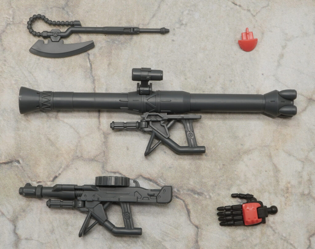 付属品はザク・マシンガン、ザク・バズーカ、ヒート・ホーク、左平手です。
