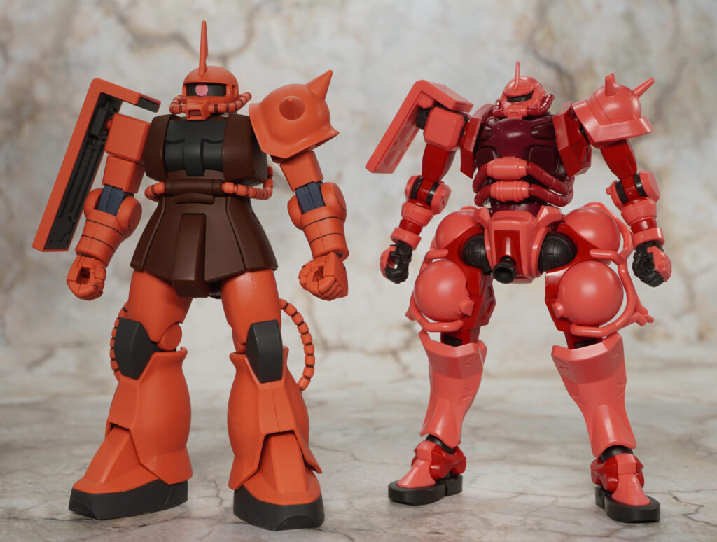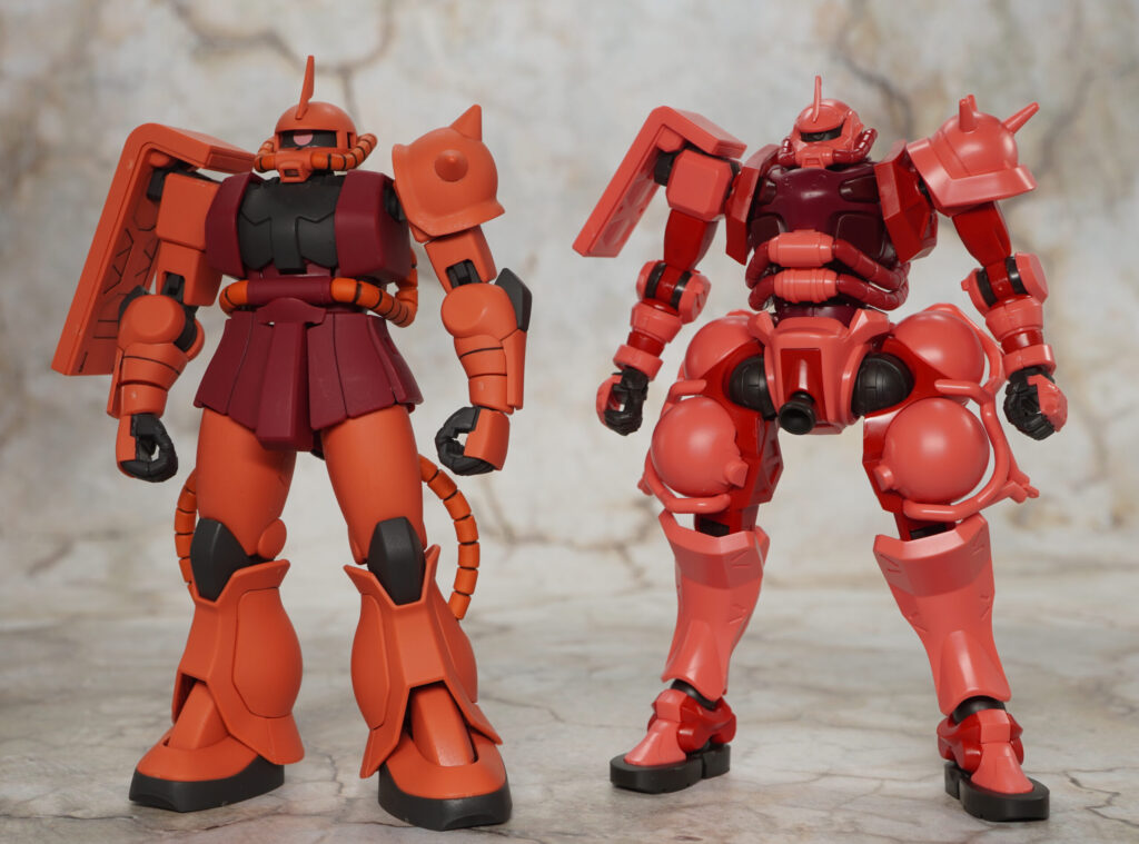 つや消し吹いてますがHGUCのシャアザクと比較。