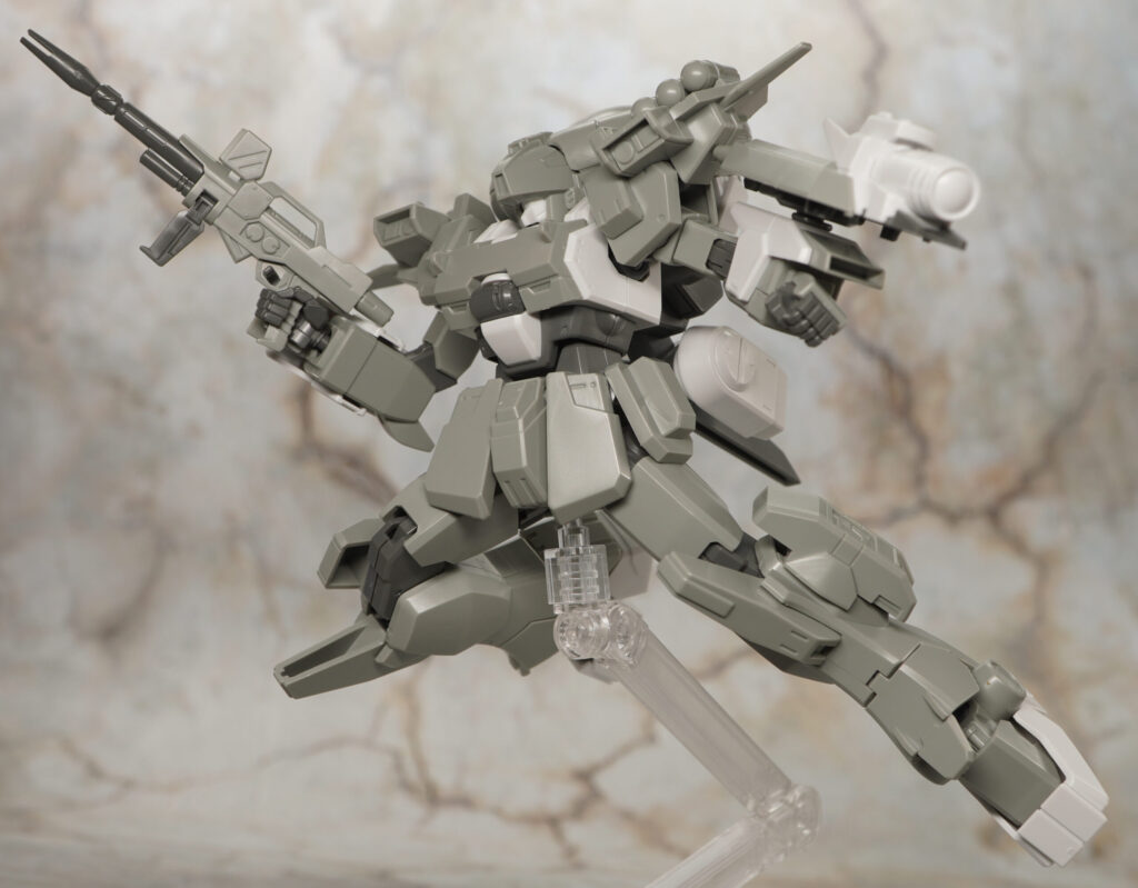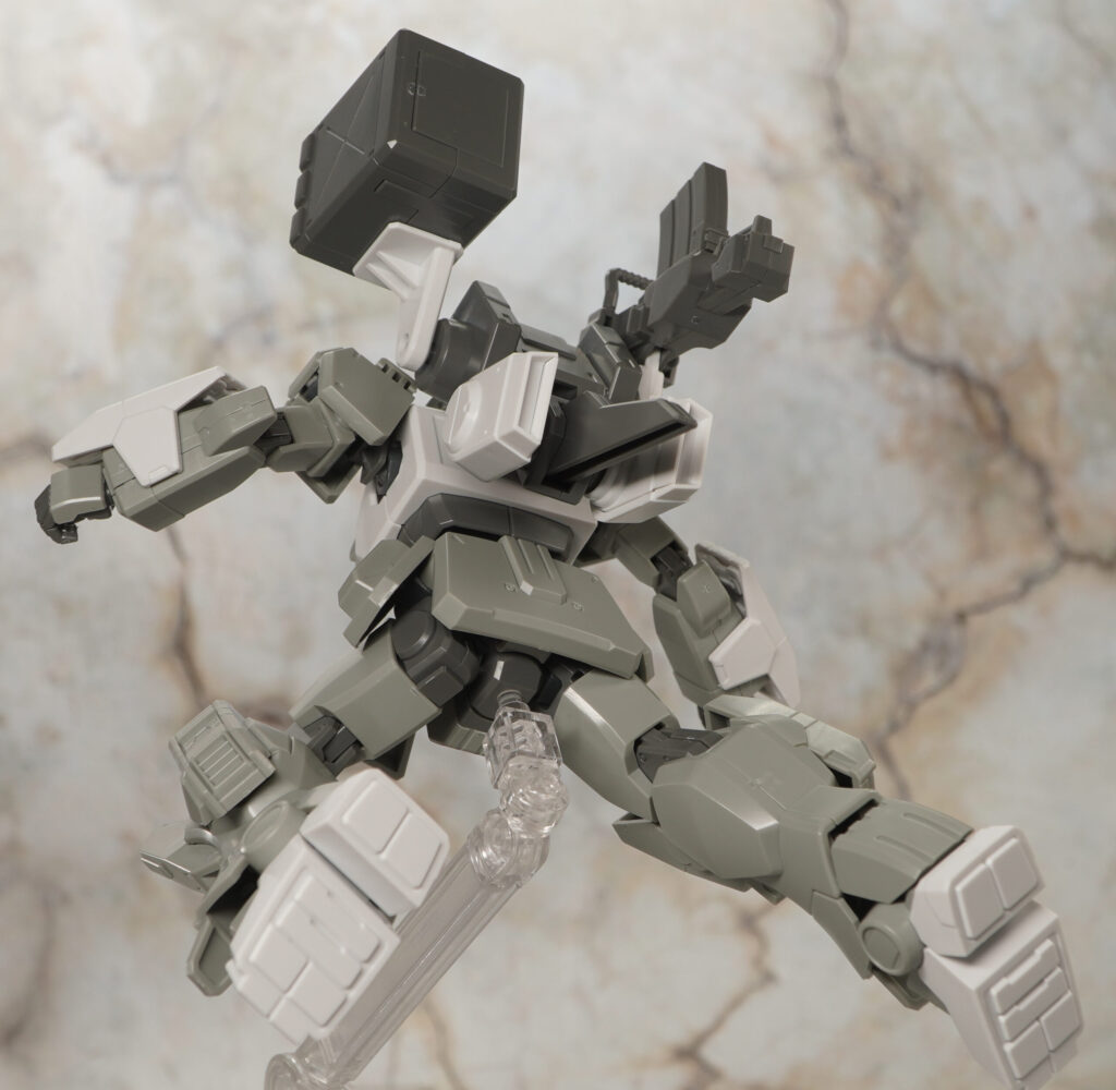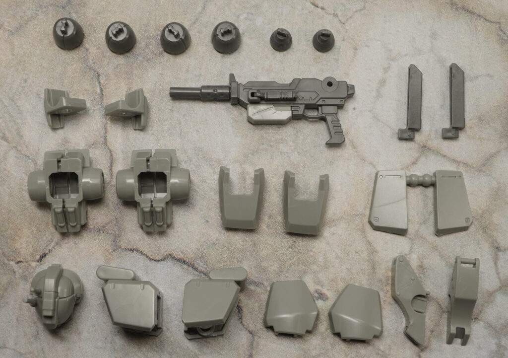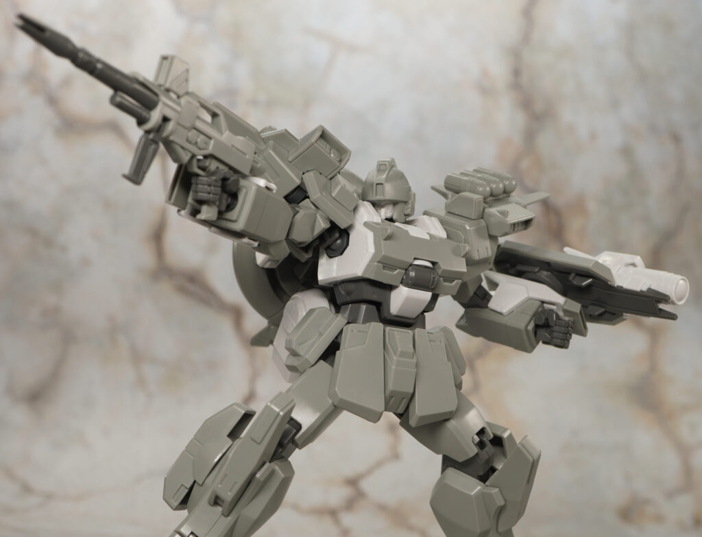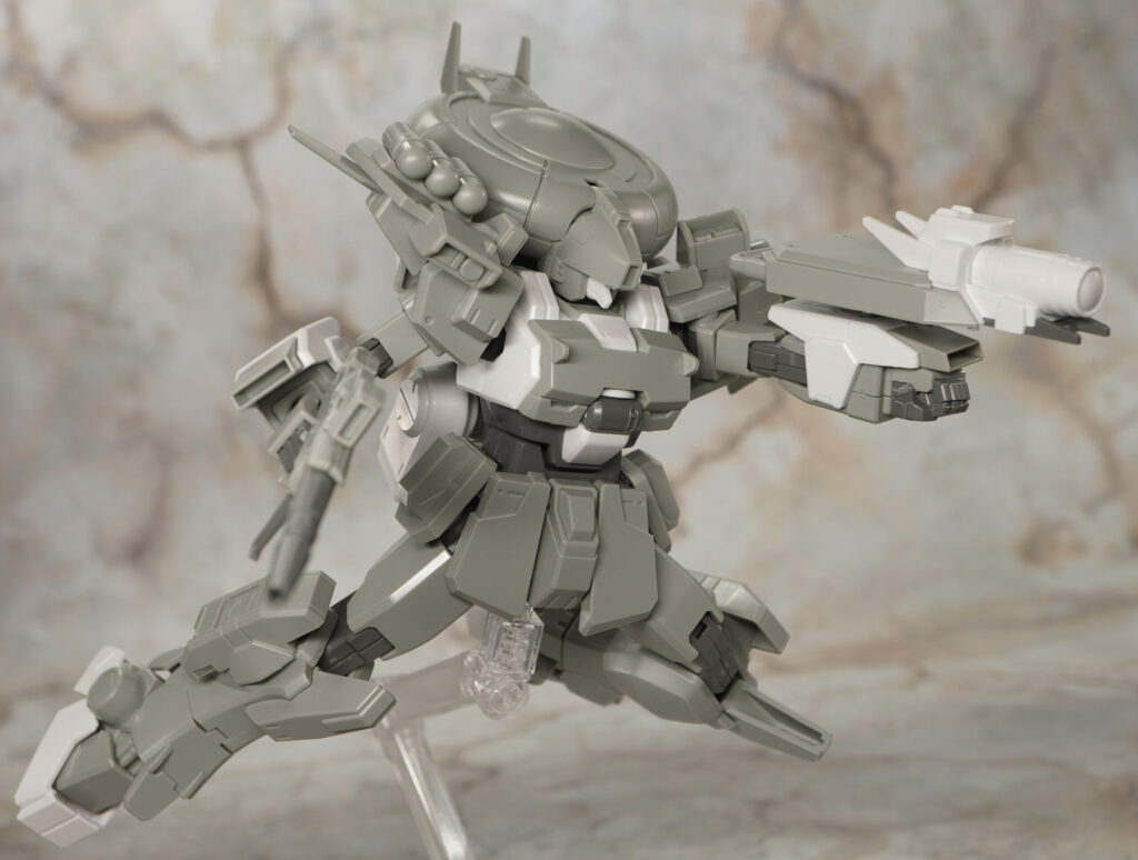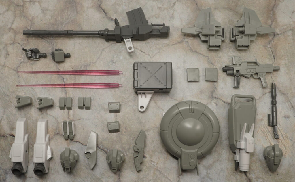 こちらの素体に頭部と肩、ヒザ、バックパックの追加パーツを装着することでイントルーダー、エリミネーター、シャドウファントムの3機を再現することができ、一応は選択式ですが組み立て後も換装できるぞ!(ビームライフルは分解要)