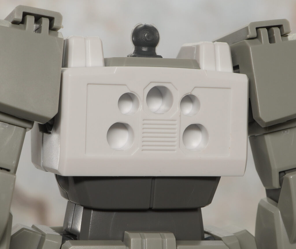 頭部のマスク部はシールでの色分けで、隠れてますがガンダムタイプのツインアイも造形されてます。