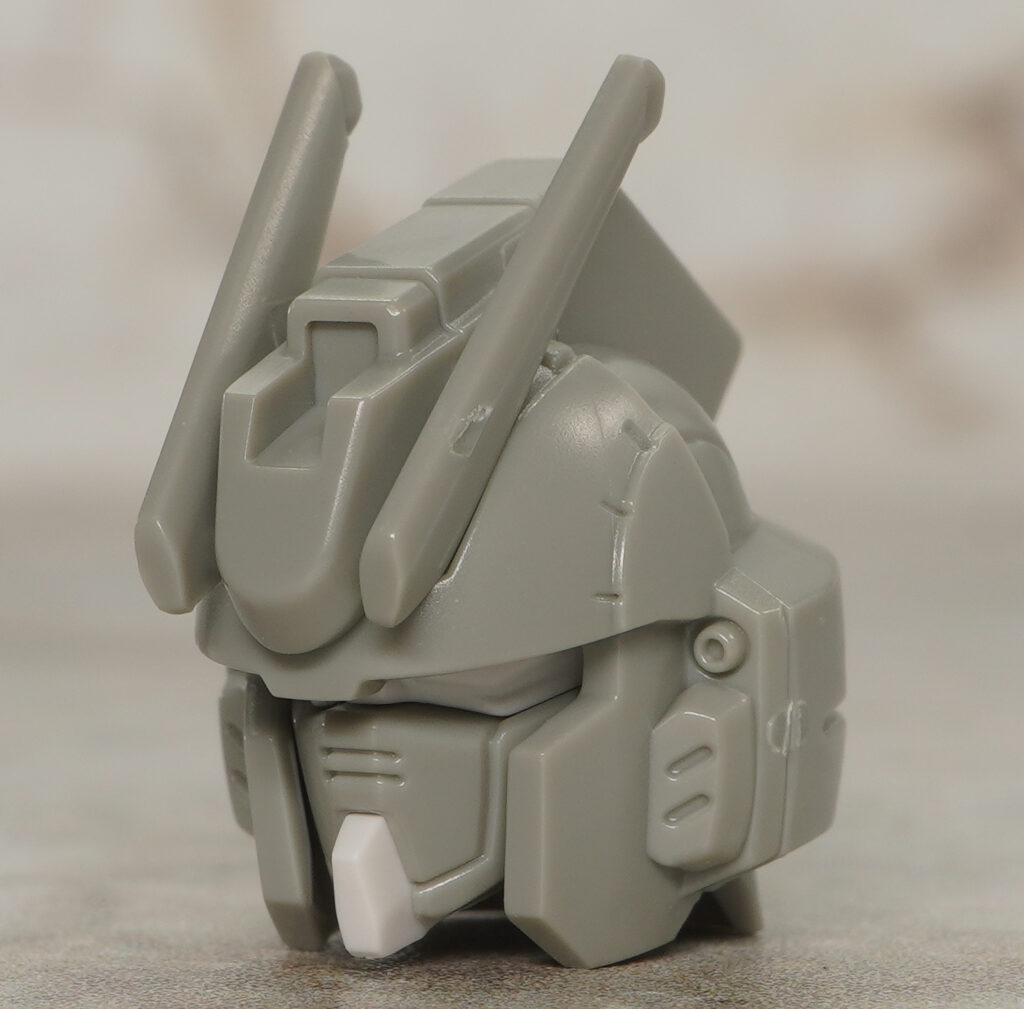頭部は標準的なガンダム顔でアンテナは白いシールで色分け。
