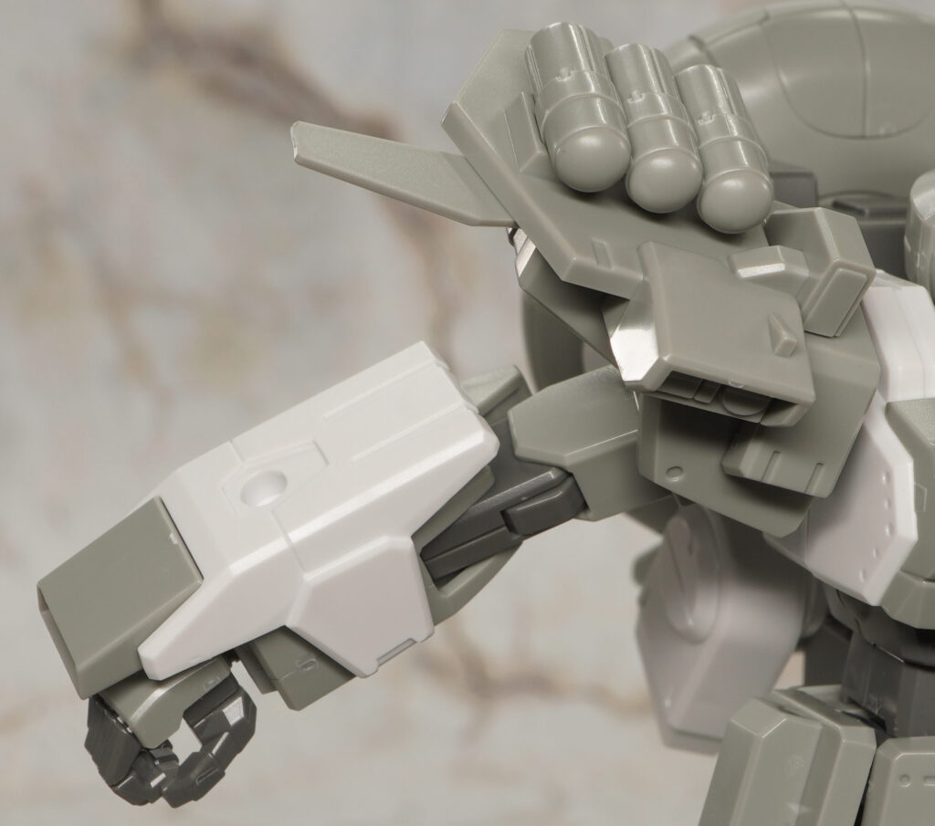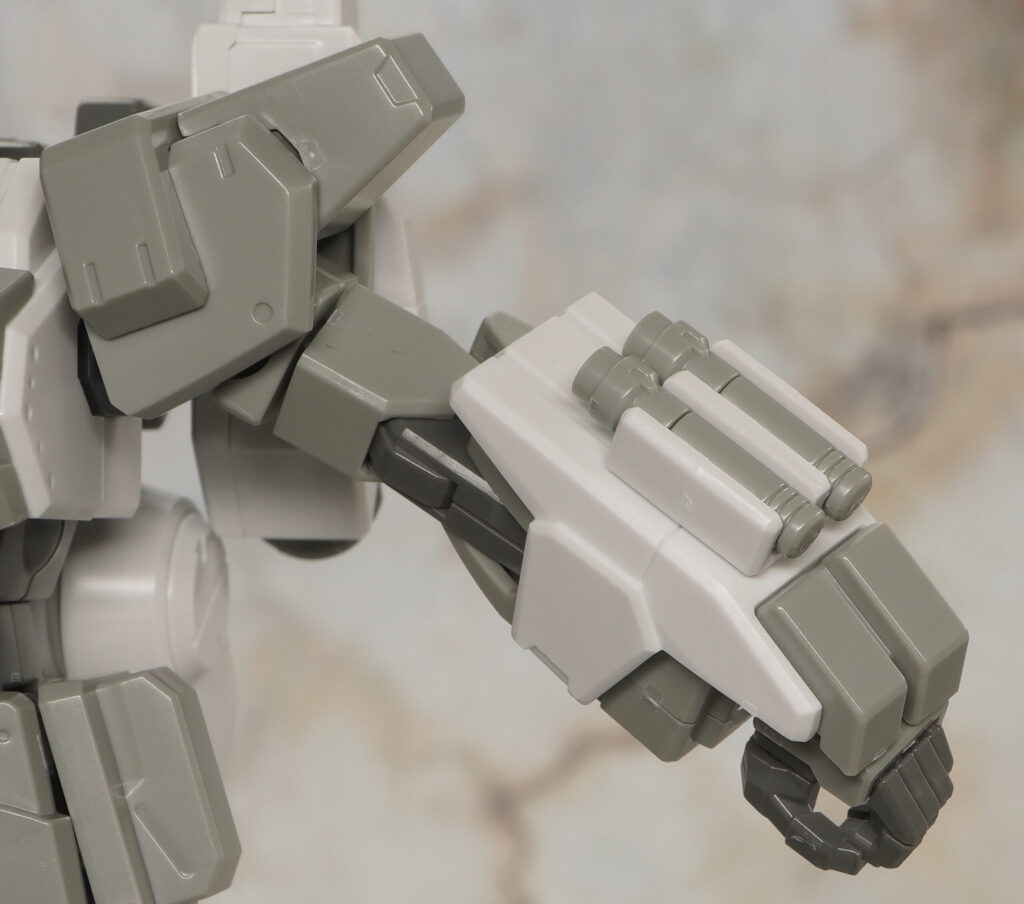 肩にはカバーパーツを取り付け、電磁ナックルだった部分には何も取り付けずバルカンとして使用。