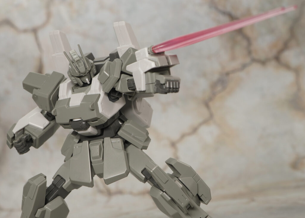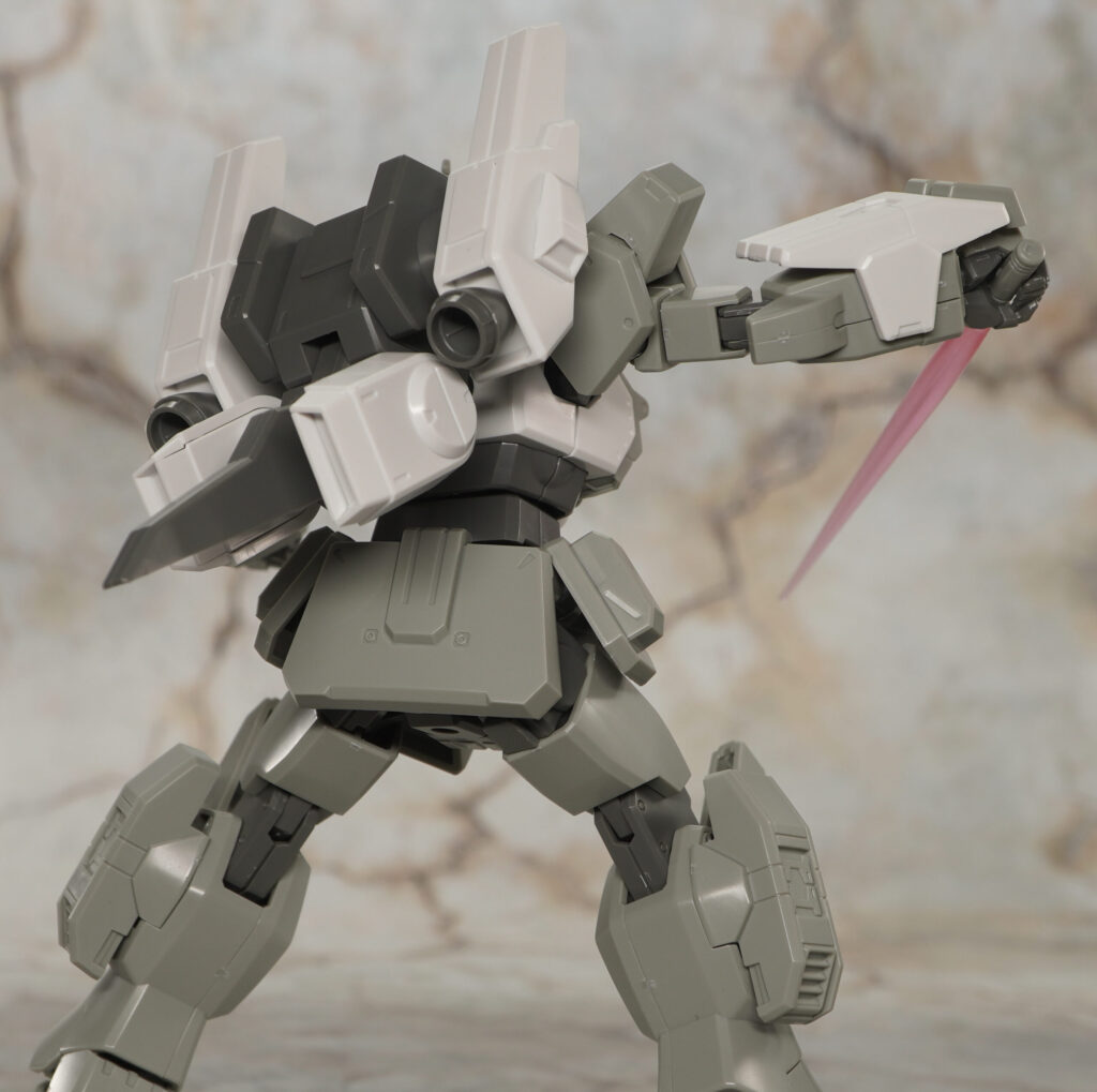 ビームライフルは銃持ち手でしっかり持たせられますが、手首がプラプラしがち。