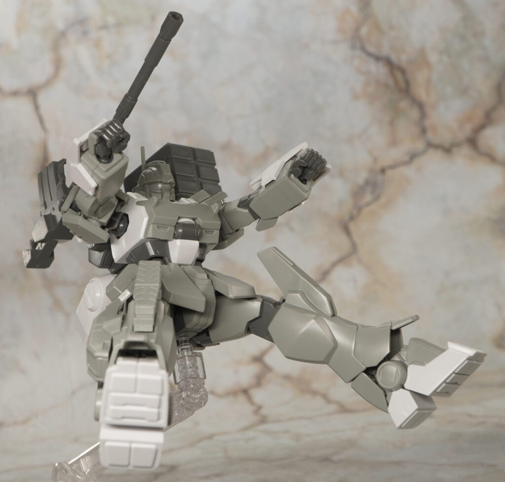 こちらは【HGBF】ガンダムEz-SR3機の共通部分。「ガンダムビルドファイターズトライ」の西東京地区予選に登場した都立成練高専科学部が第08MS小隊のEz8をベースにビルドしたガンプラ。