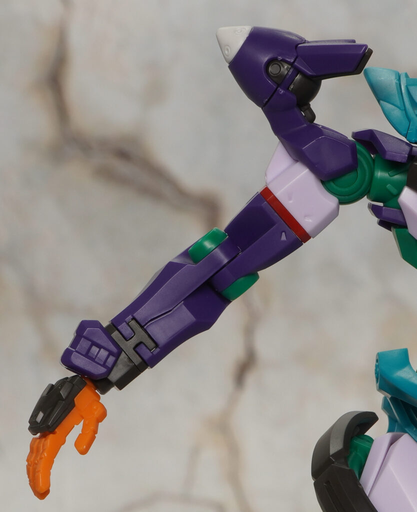 腕部は二の腕や手首でロール可動し、ハンドパーツは左右とも持ち手と平手が付属。