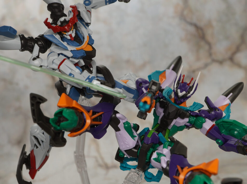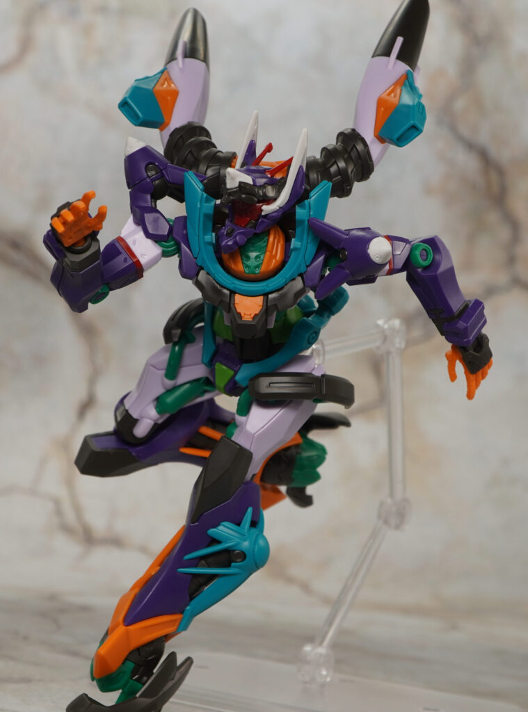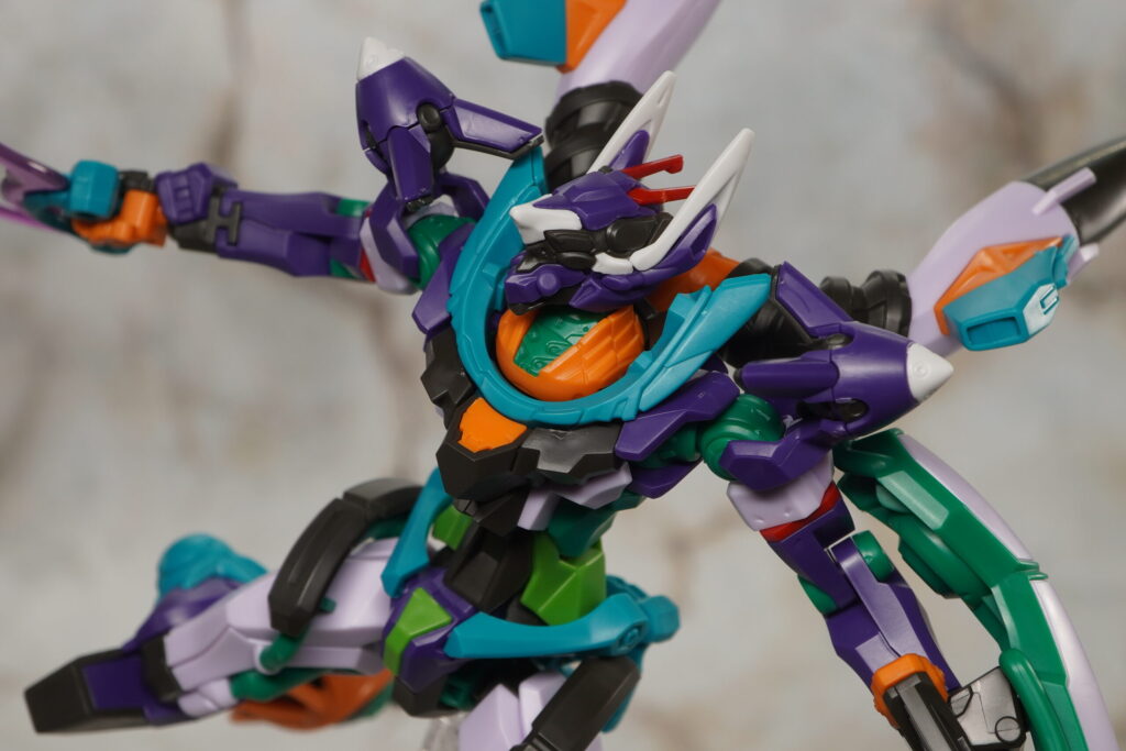 エントリープラグの分離やパレットライフル、ATフィールドなどのギミックもそのまま受け継がれており、さらに今回は頭部を交換して暴走モードを再現したり、エスビットを分離したりもできます。