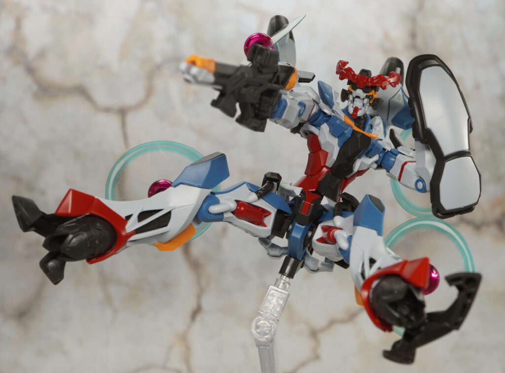 超絶複雑なデザインですが細かいパーツを沢山使って色分されており、ホイルシールで足りない部分を補ったりマーキングシールを使って各所の赤ラインも再現できます。