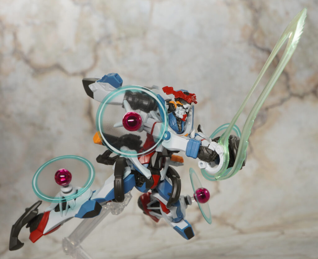 股関節はボール軸で3軸可動し、リアにはビーム・サーベルをマウント。