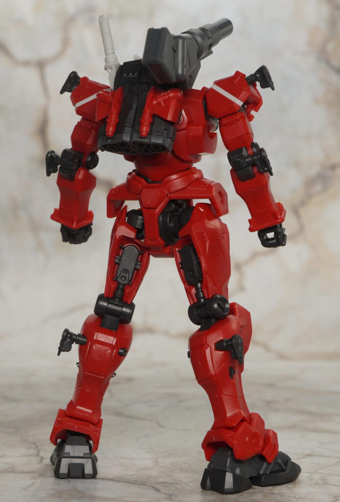 ガンダムみたいに展開した状態のパーツはありませんが、肩とヒジ、ふくらはぎには武装ジョイントが備わってます。