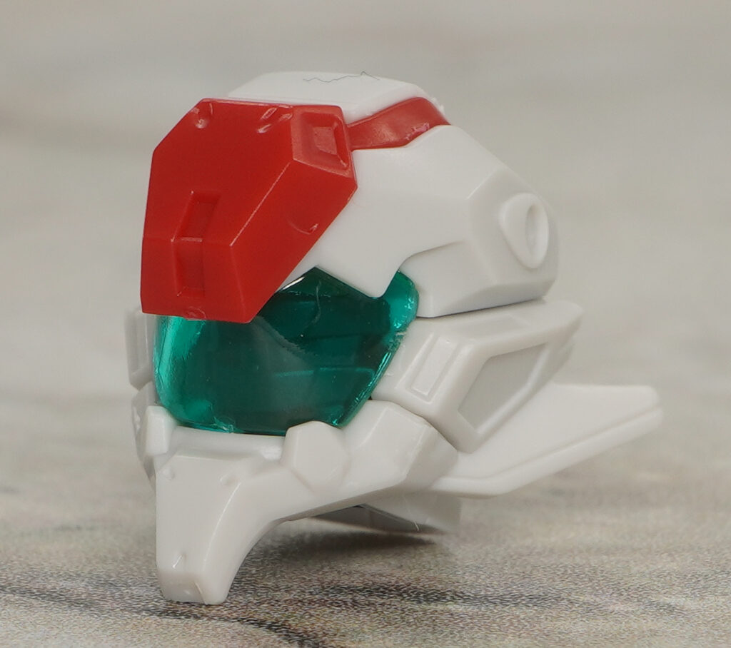 物凄いシャクレ顔な頭部はバイザーがクリアパーツ製で内部の四つ目ディティールはシールで色分け。
