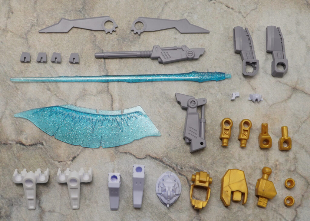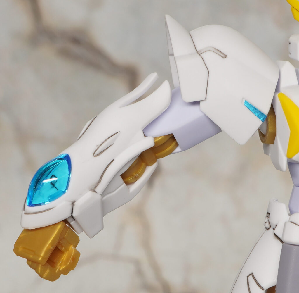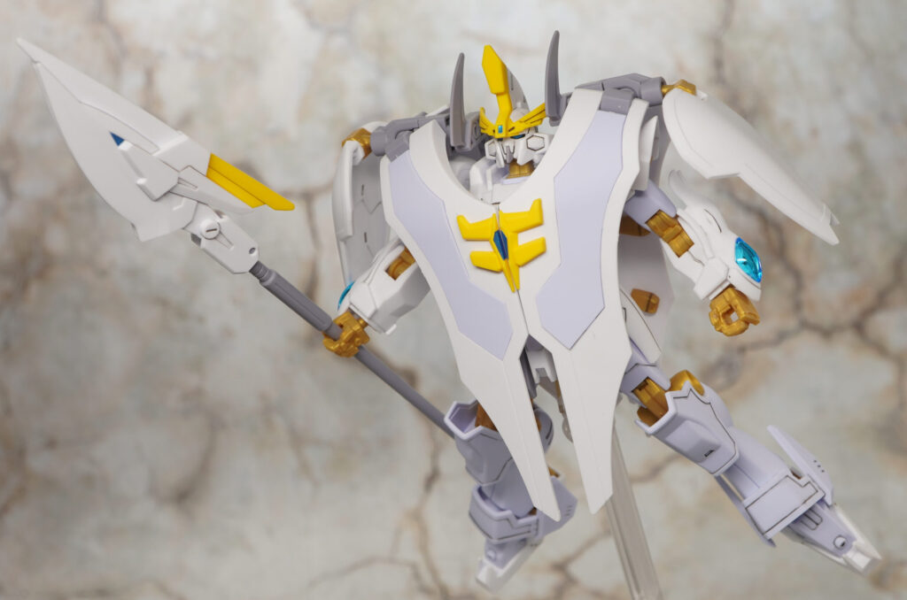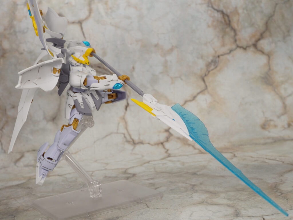 武装はロッド、ランス、サイズモードになるビームランスや、腹部にはガンダムヴァサーゴが元ネタのメガソニック砲が造形。