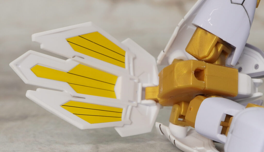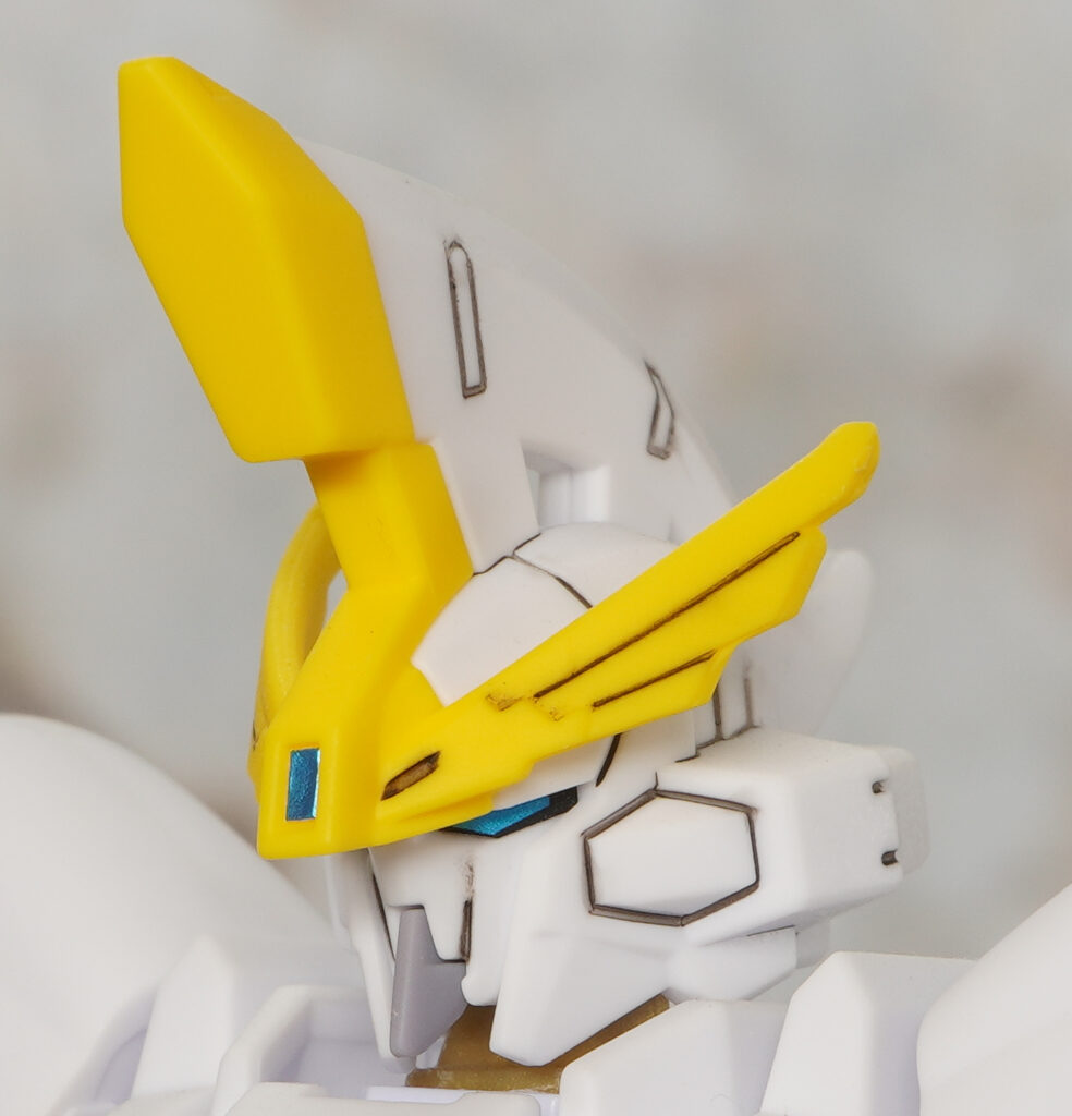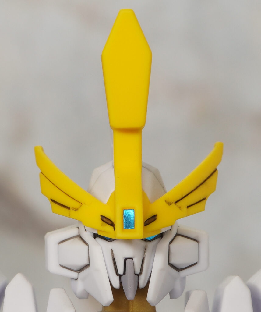 頭部はデスサイズヘルなどの流用は無く丸っと新規造形でツインアイや額のセンサーはシールで色分け。