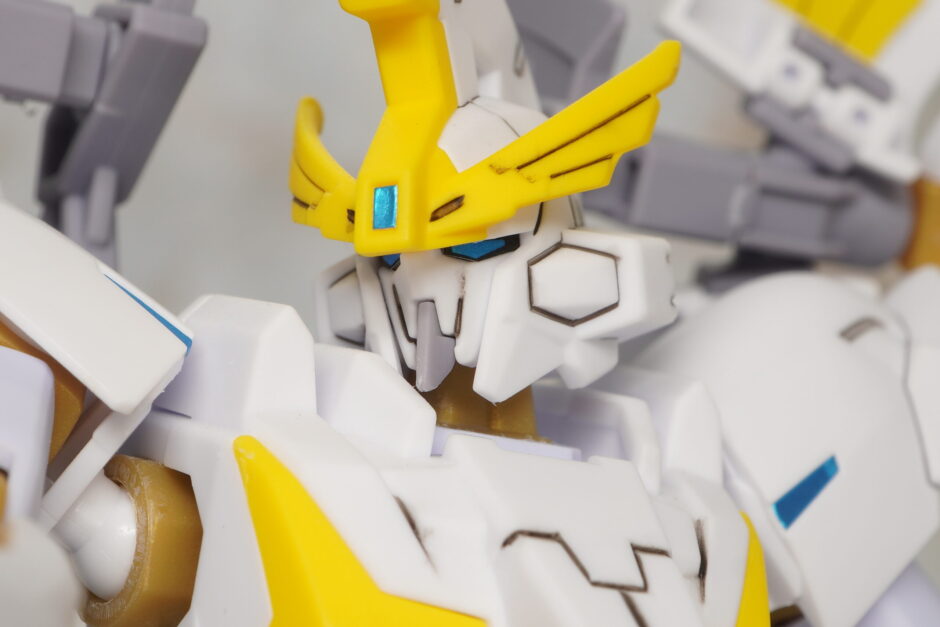 頭部はデスサイズヘルなどの流用は無く丸っと新規造形でツインアイや額のセンサーはシールで色分け。