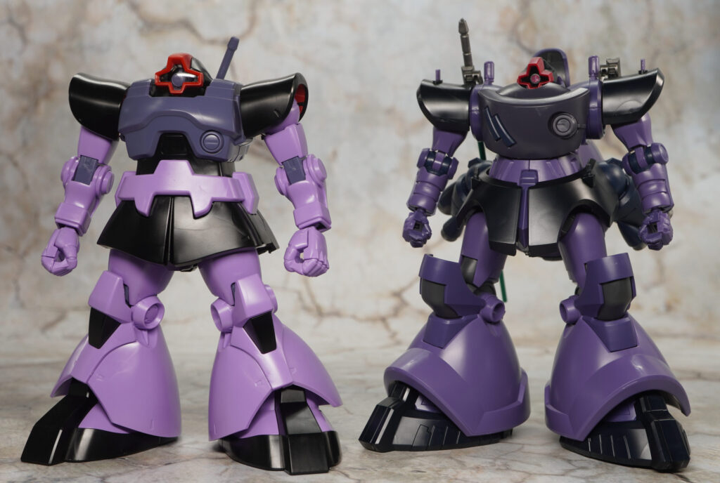 今回のはジオン兵からスクラップ屋に都落ちした元黒い三連星のクラン”BINARYS(バイナリーズ)”のガイアとオルテガが乗るリック・ドムということで、通常仕様のザクの様な緑基調ではなく正史と同じ紫色なカラーリングです。