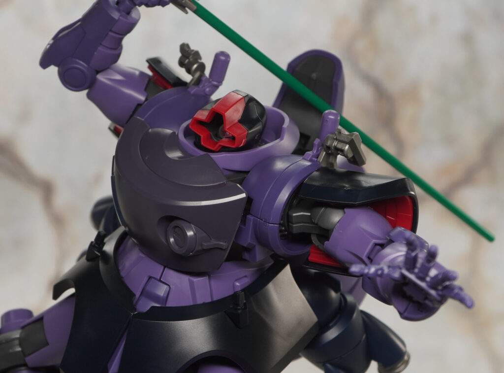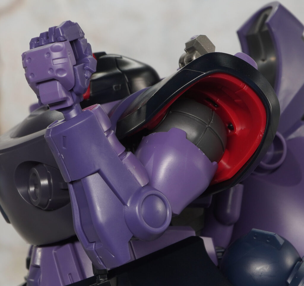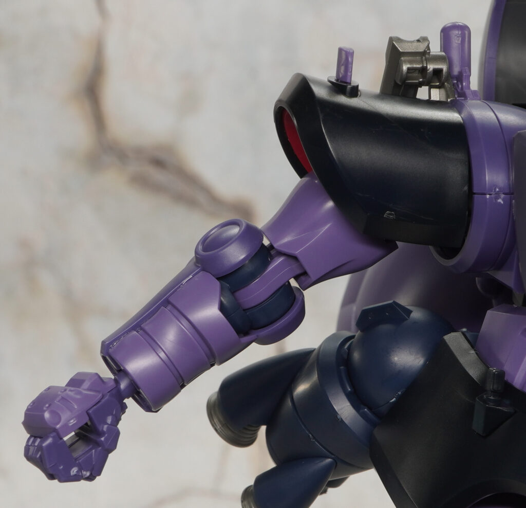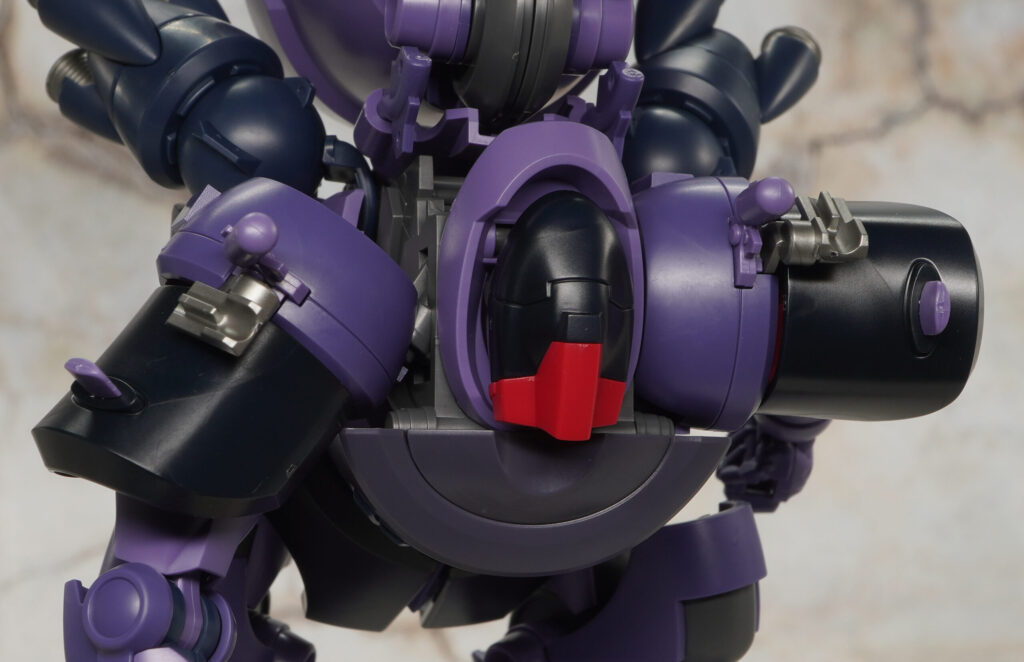 頭部は正史ドムと同じ様な形状ですが物凄い小顔で、モノアイがピンク色のパーツで造形されておりボール軸で上下左右に可動。