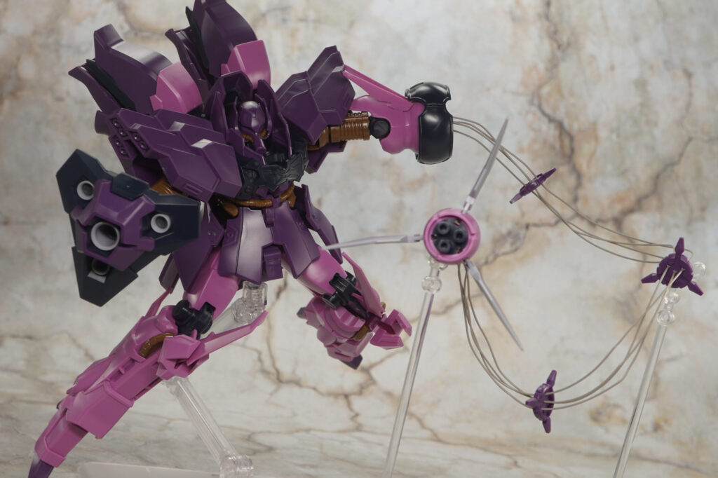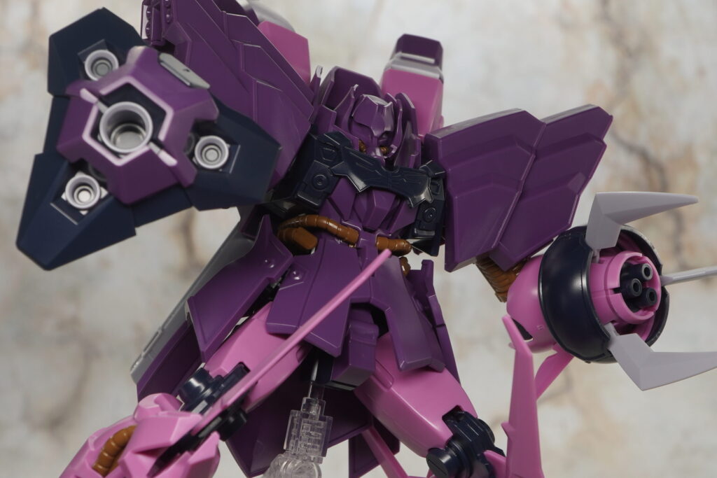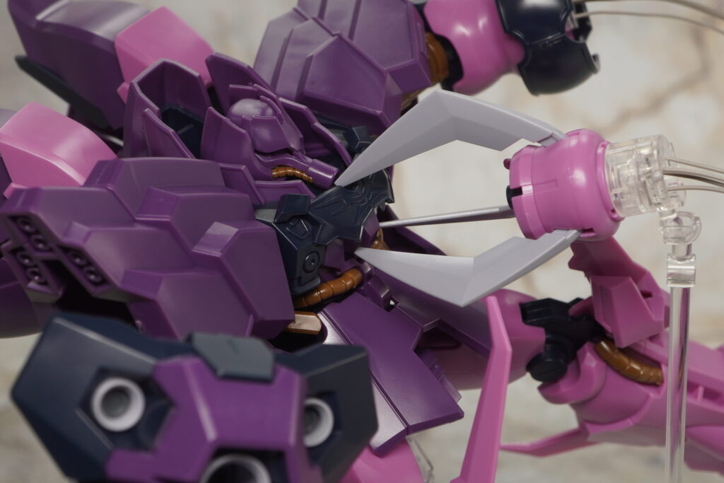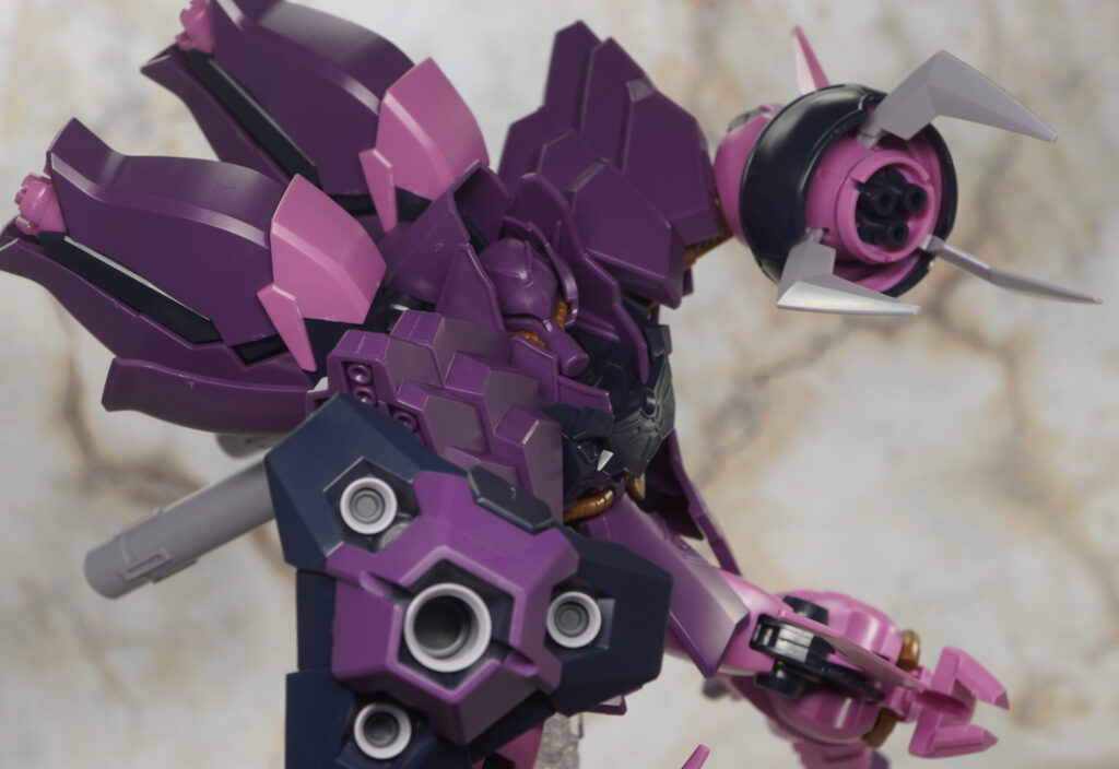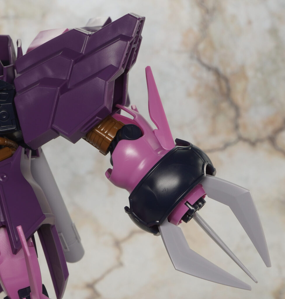 左腕のインコムクローは開閉可動し3連装メガ粒子砲が造形。