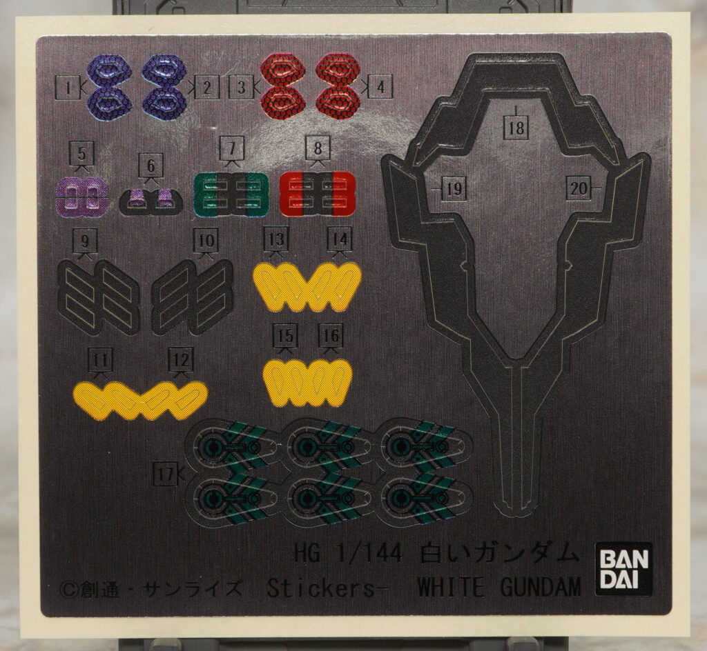 パッケージとシール。センサー類やシールドなどを色分けするホイルシールと、連邦エンブレムを再現できるマーキングシールが付属。