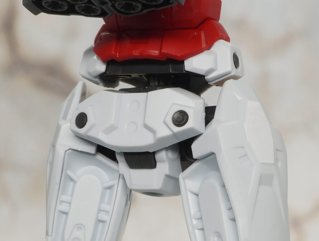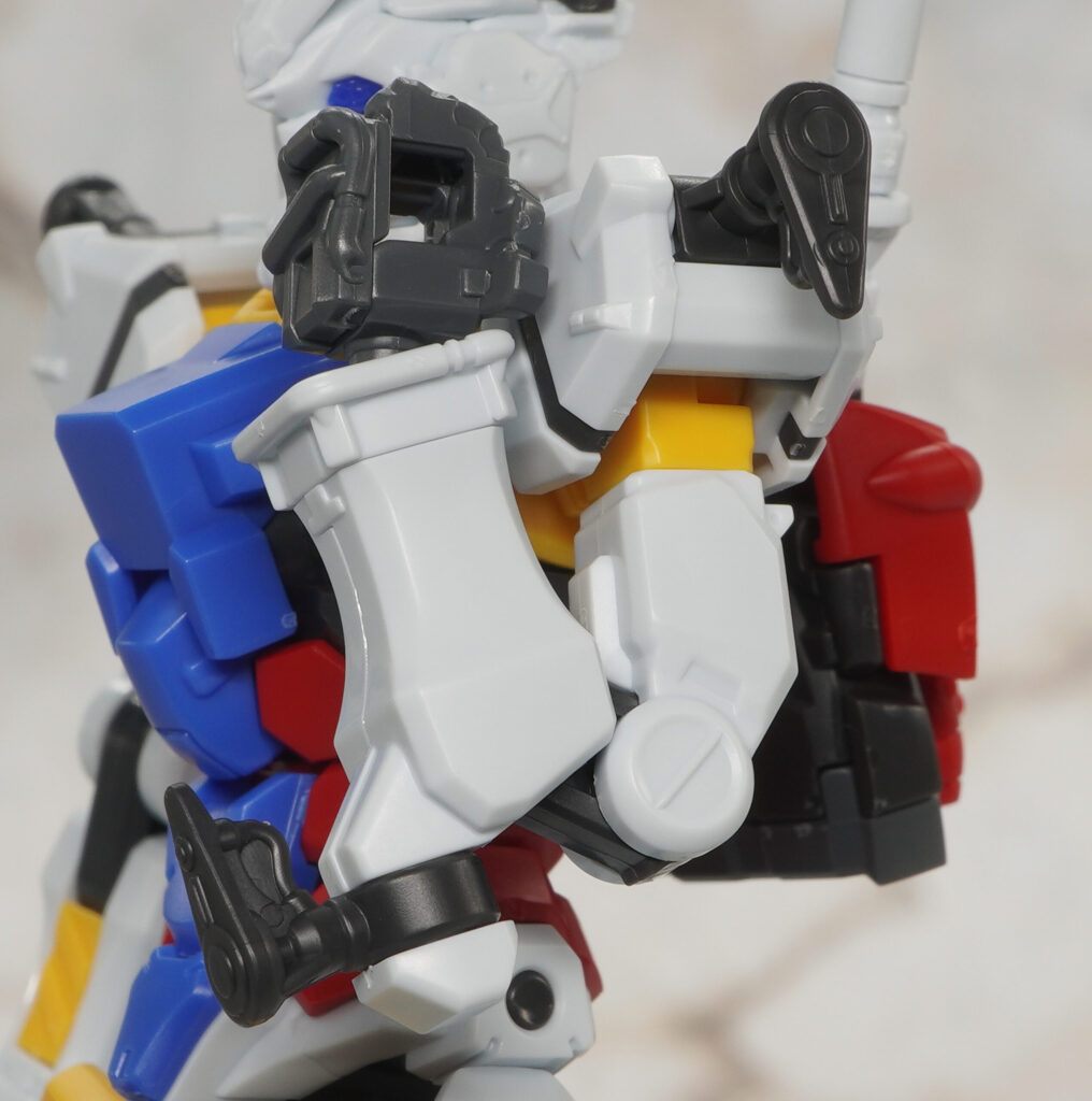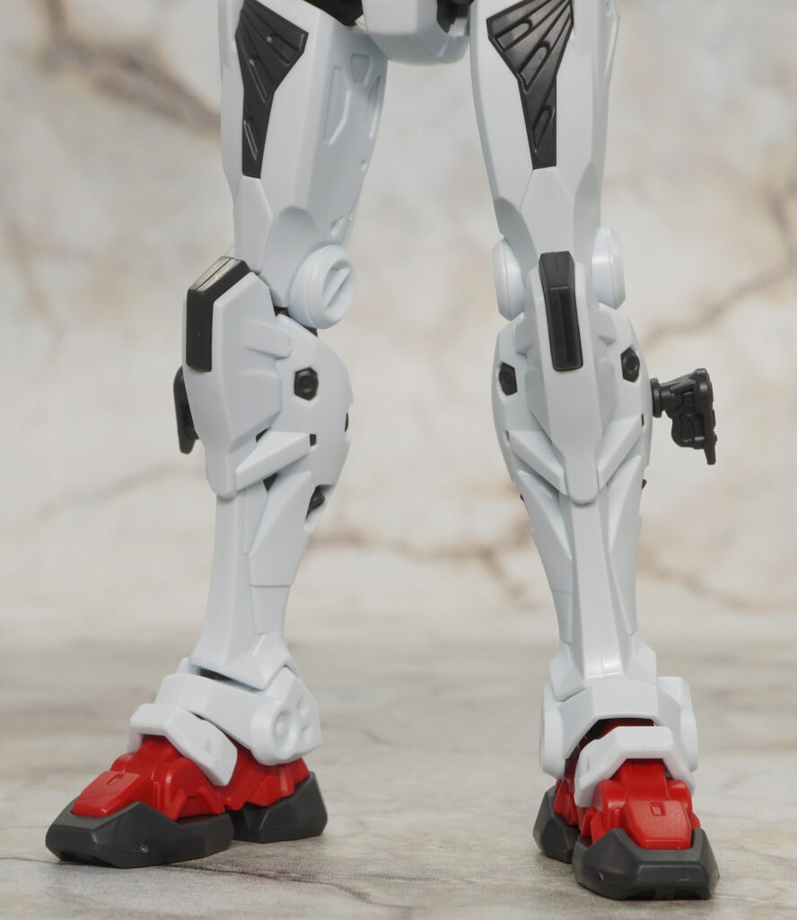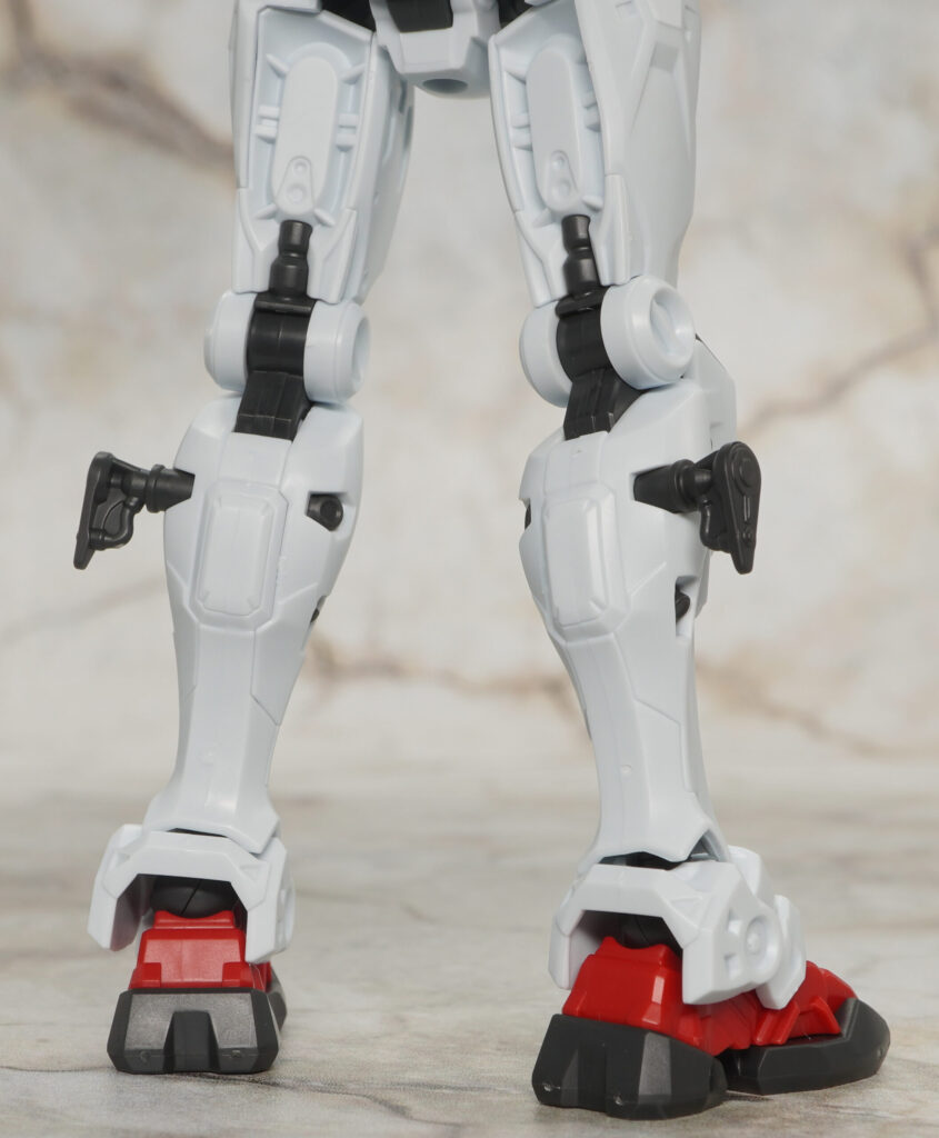 脚部も赤いガンダムと同じデザインで、ふくらはぎのジョイントも軸ピン付きに交換可能。