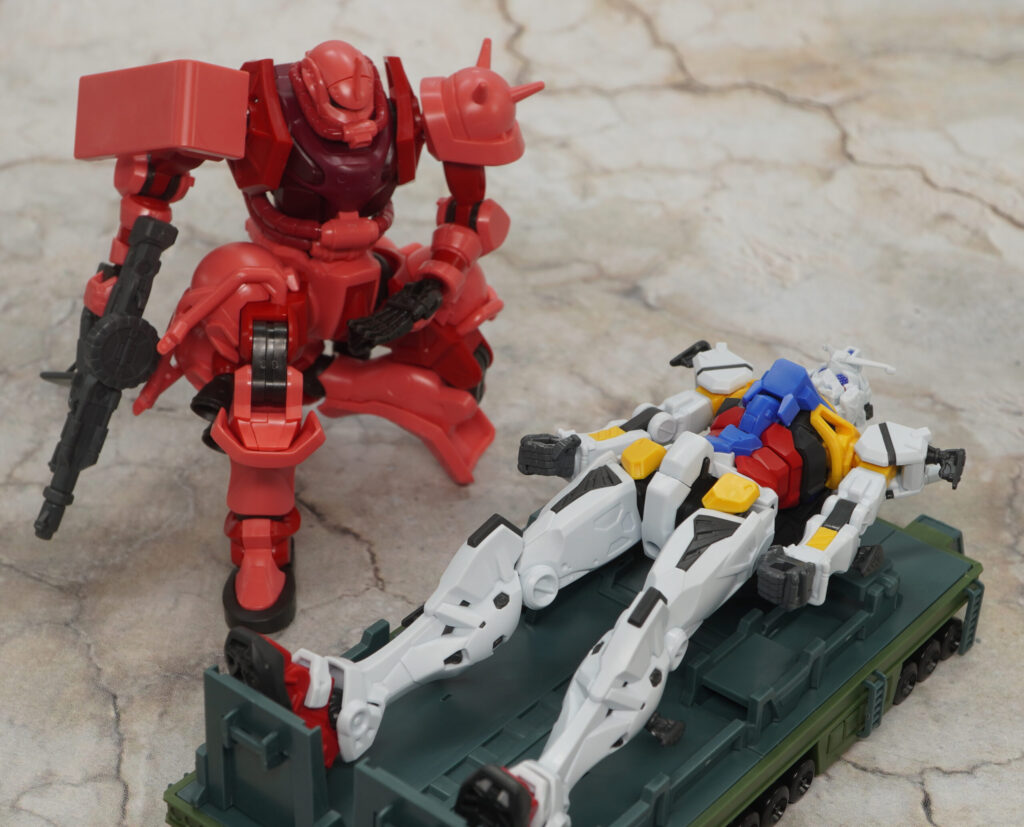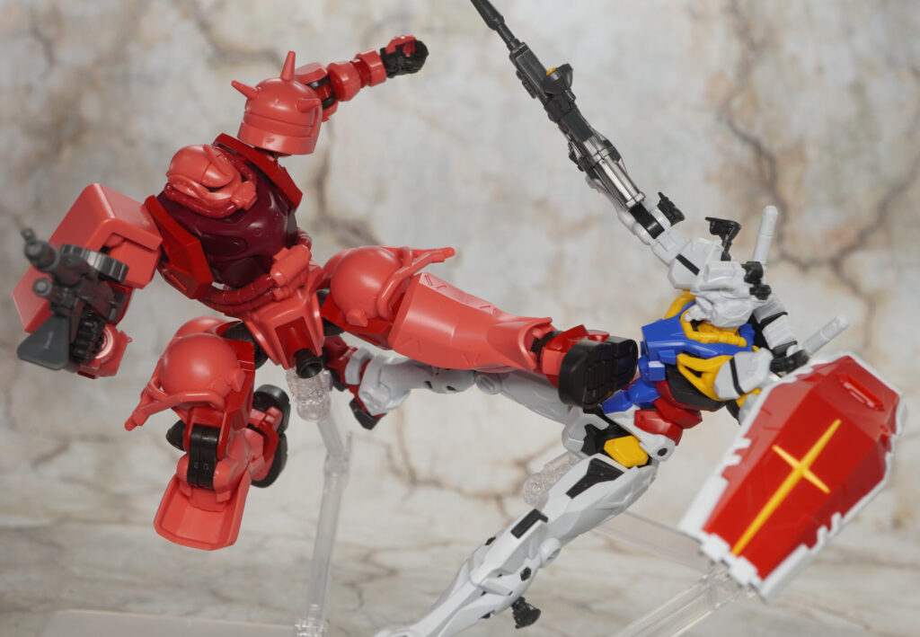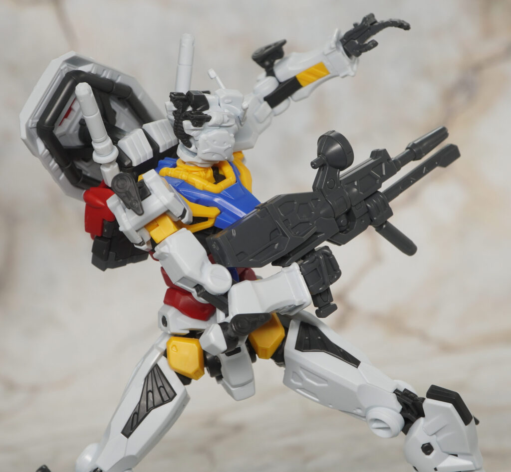 ビーム・ライフルとシールドは赤いガンダムと同じモン。