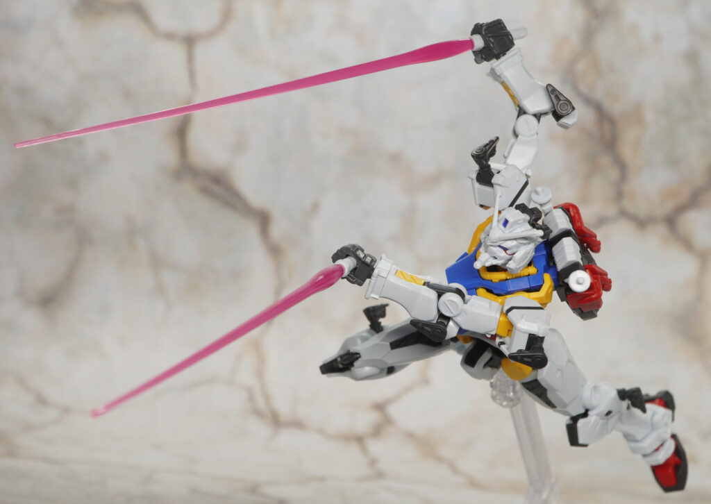 二刀流もできるし、頭部の回転構造で大きく上を向かせることもできるぞ!