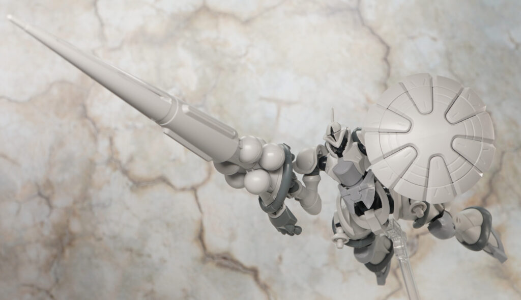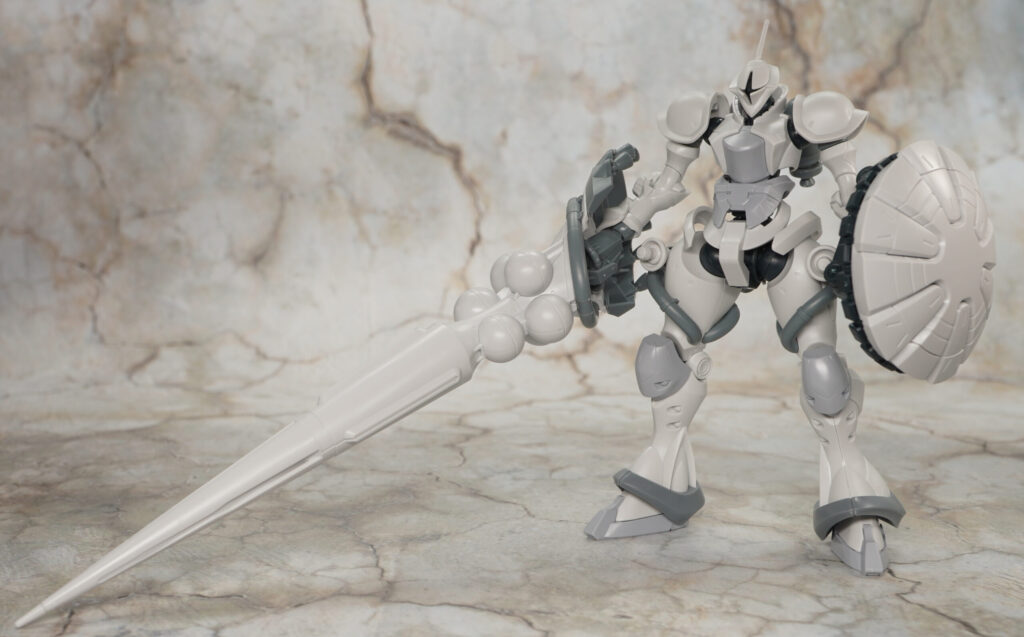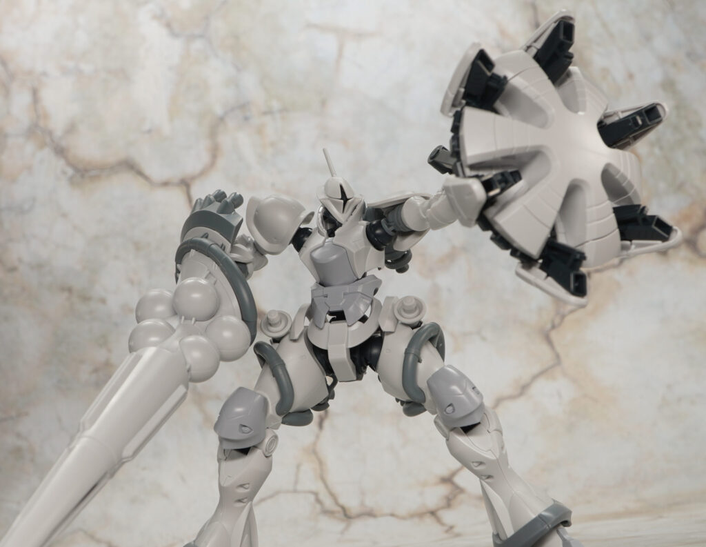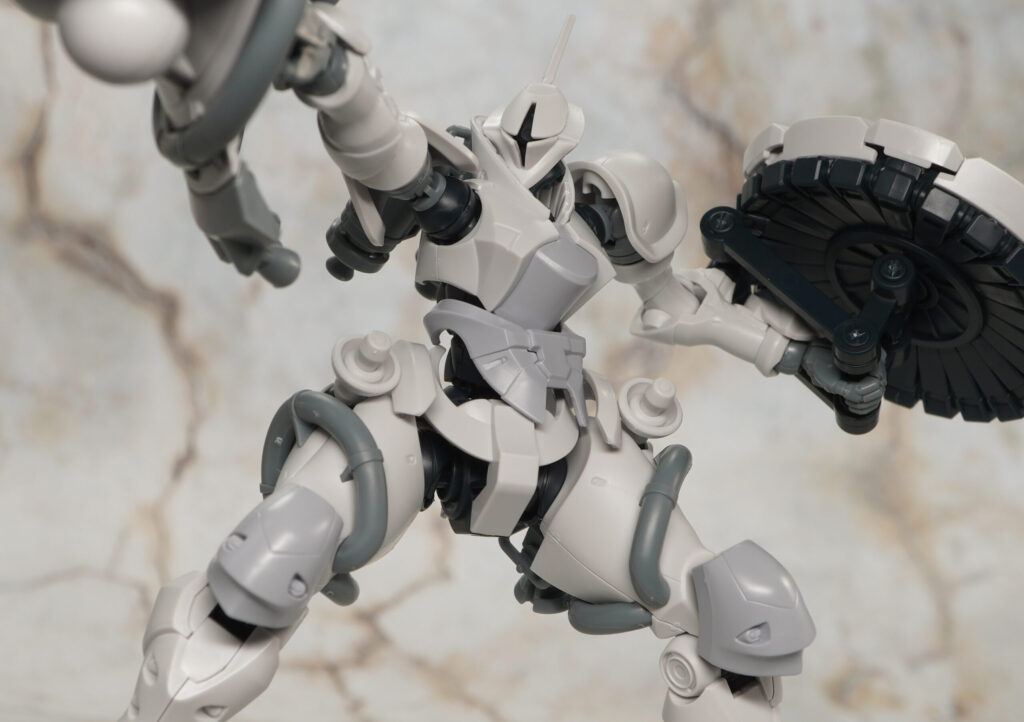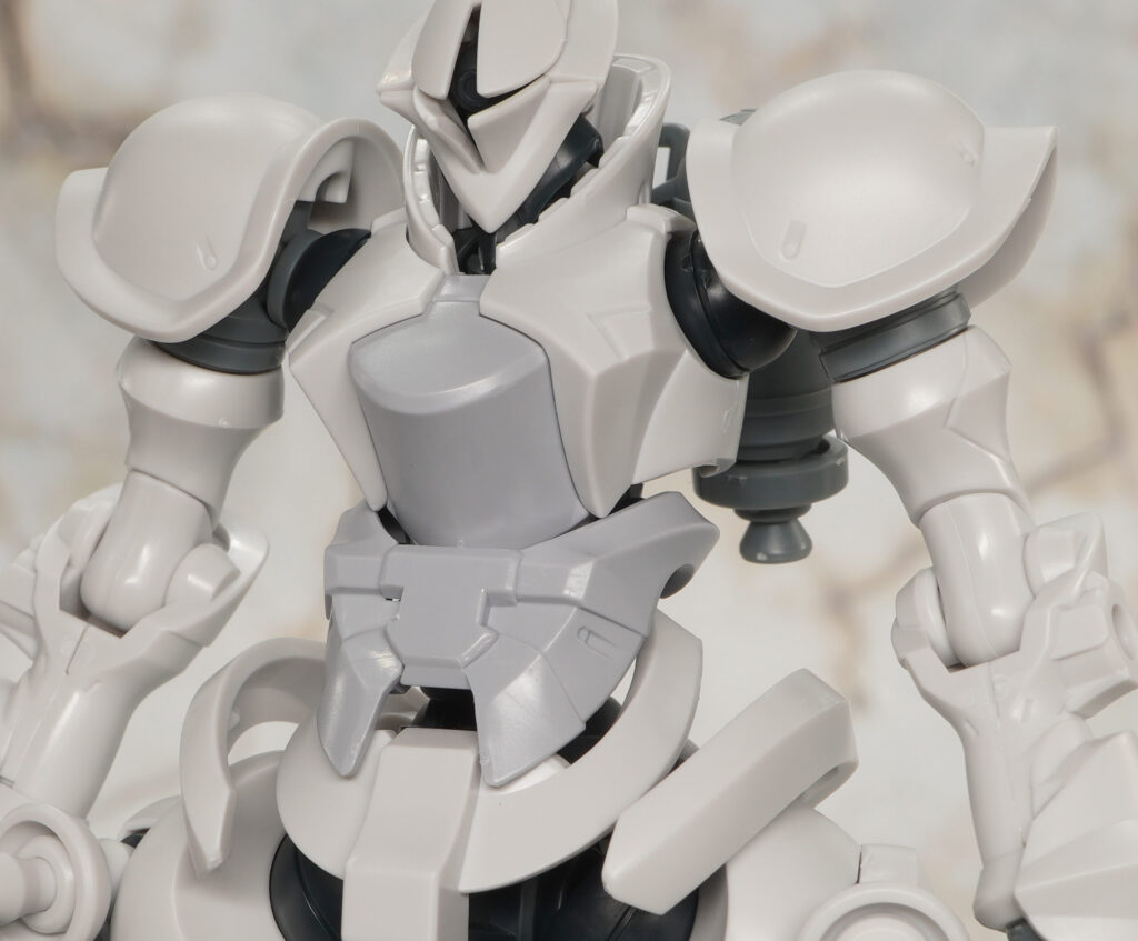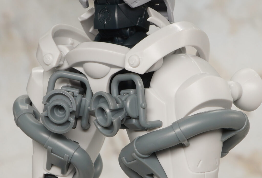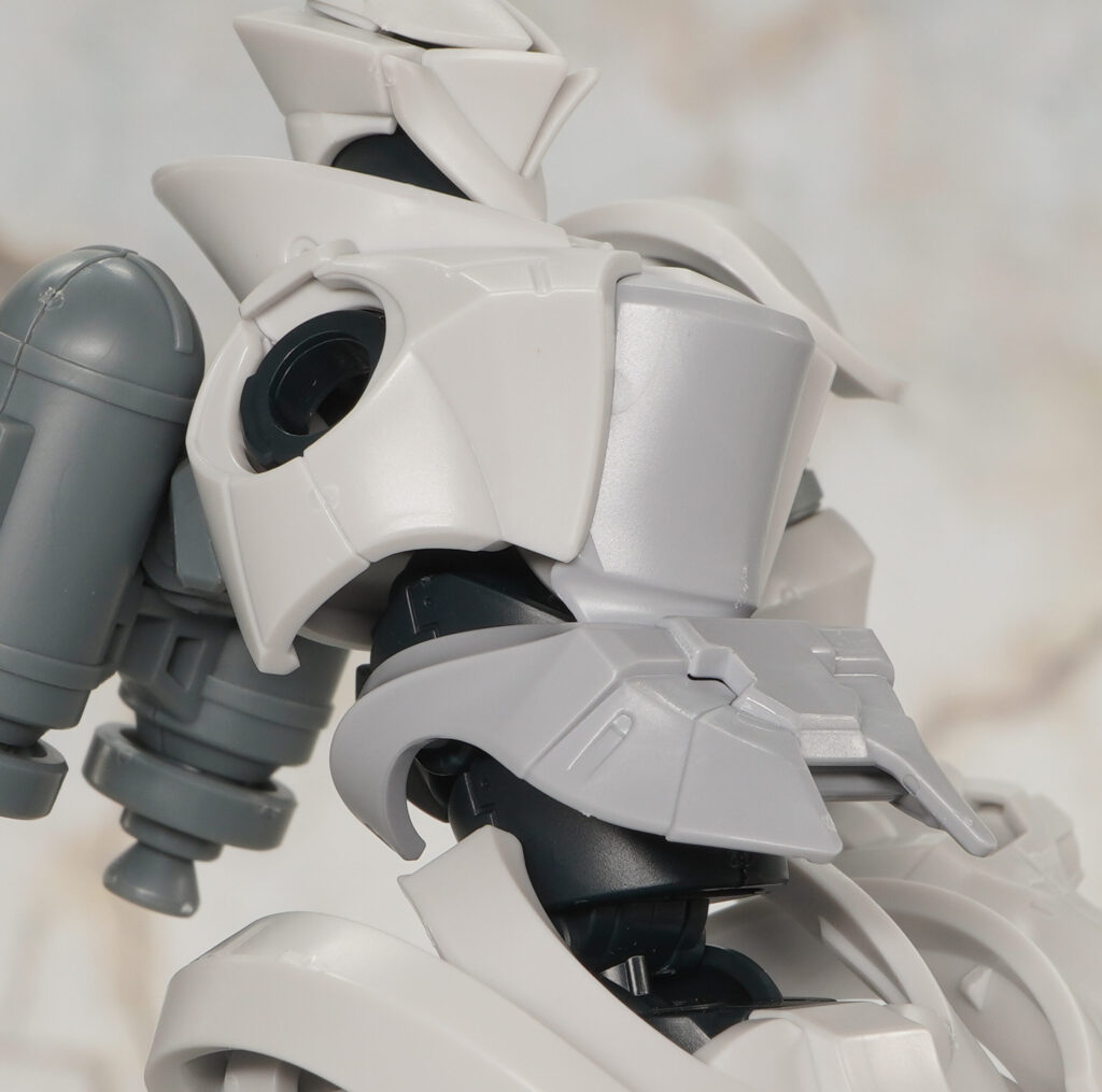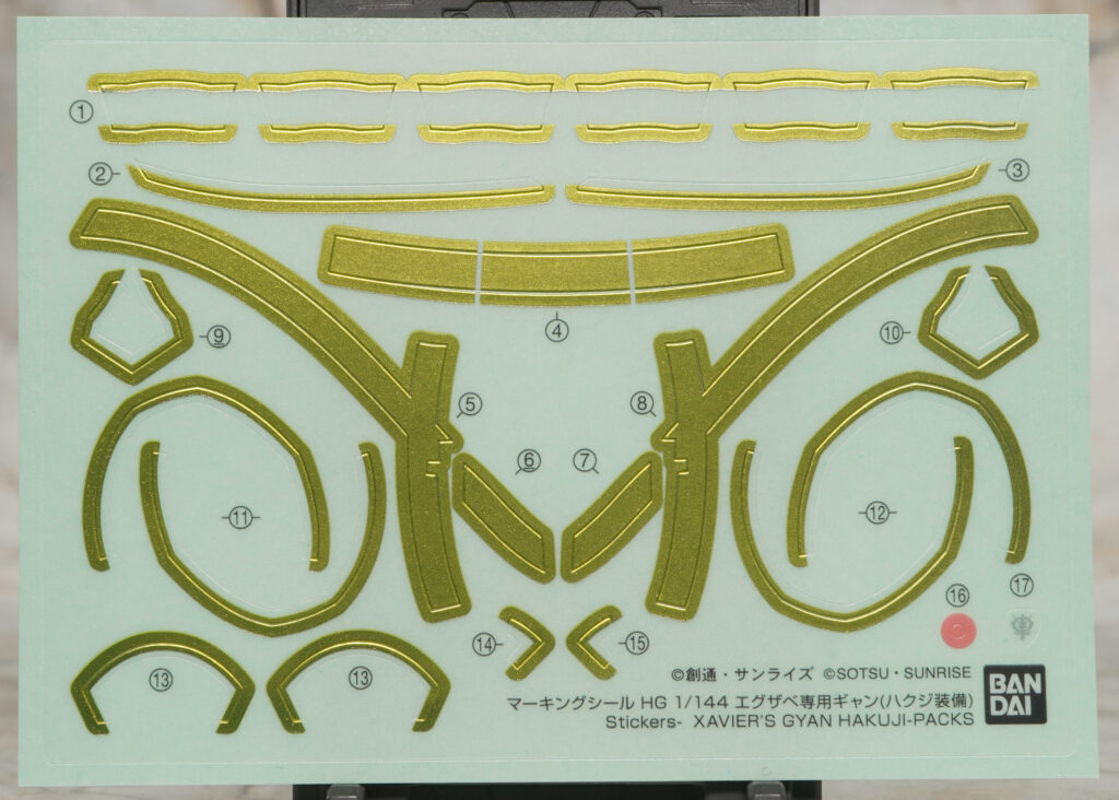 エグザベ少尉専用機ということで全身白系のカラーリングになっており、肩や太ももなどのゴールドラインはマーキングシールで色分けできるようになってます。