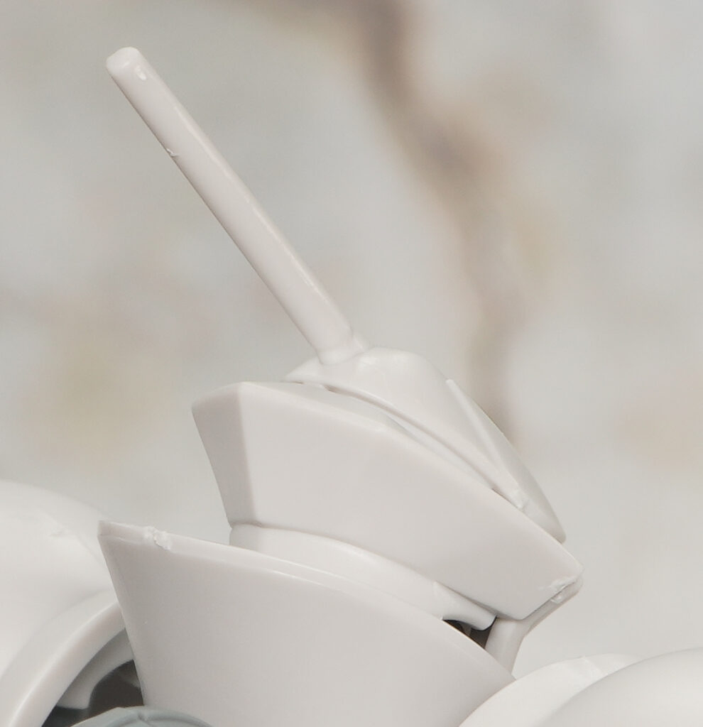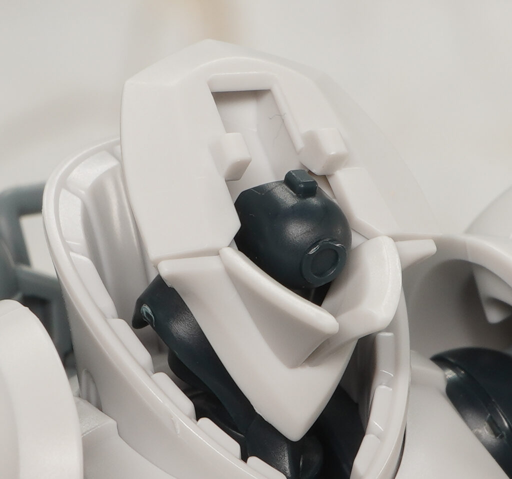 頭部は十字型のモノアイスリットが再現されており、頭頂にはアンテナが造形。