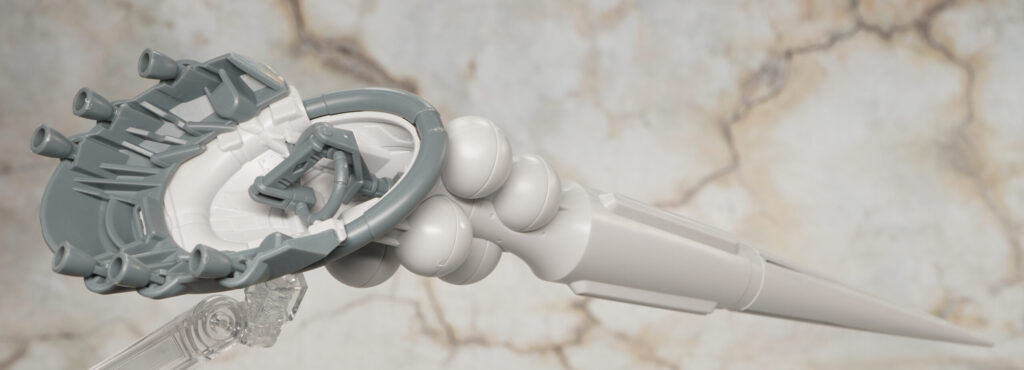 ビーム・サーベルは太ももに装備している物のグリップ差し替えて持たせます。