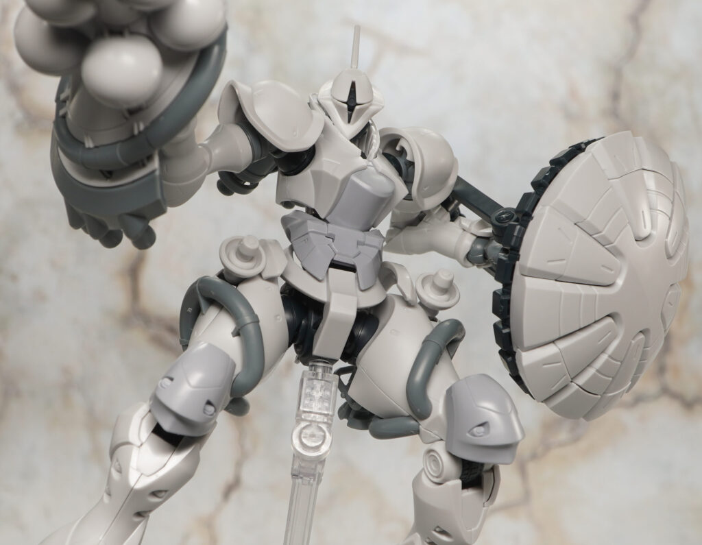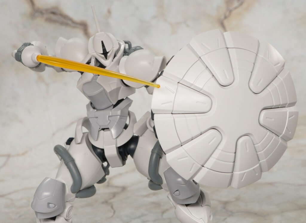 ギャン・シールドはアームを動かして正面にも構えられるぞ!!