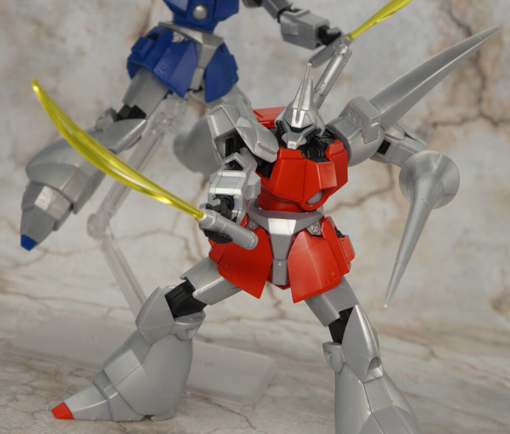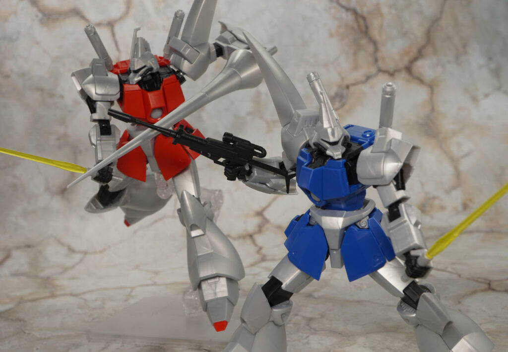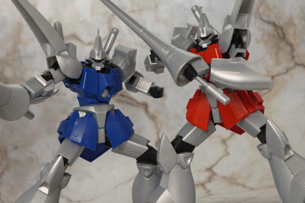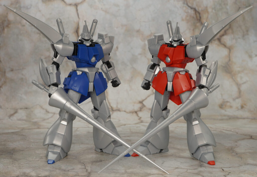 赤い方はランス・ギーレンが乗ってたガズL(ガズエル)で、肩アーマーが左右逆向き以外はガズアルと同じ形状。