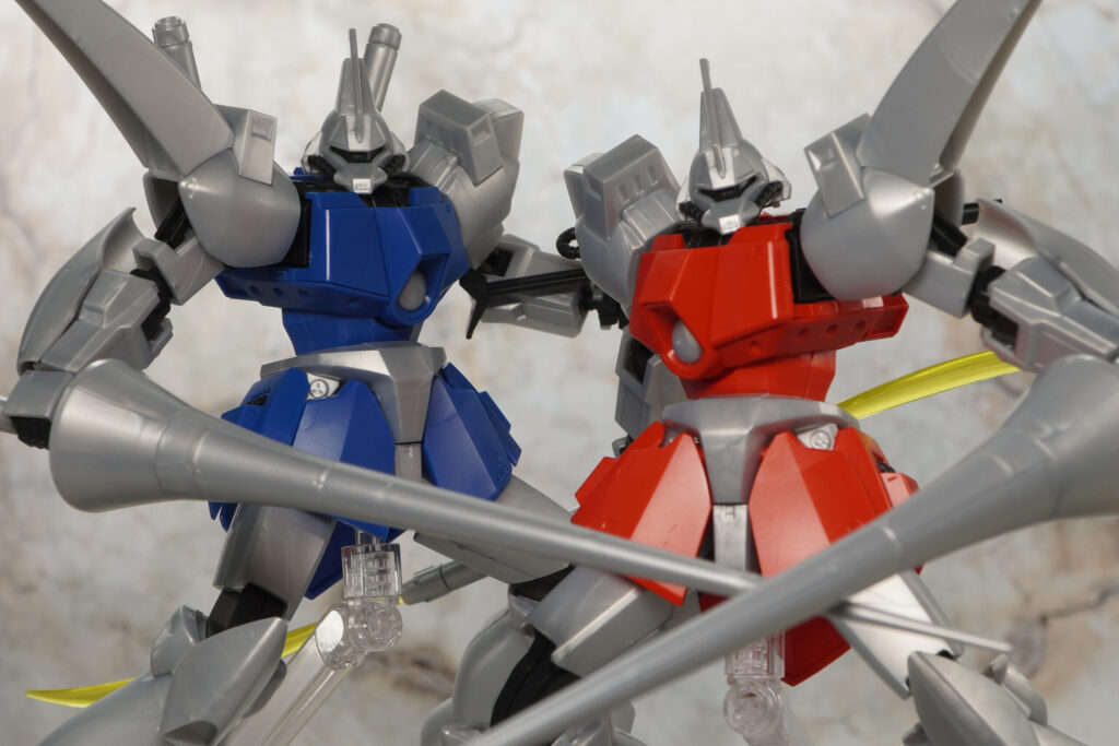 こちらが完成した【HGUC】ガズR/Lです。「機動戦士ガンダムZZ」に登場したキャラ・スーンの護衛であるロイヤルガードのギーレン双子が搭乗していたガズアルとガズエルのセットキット。