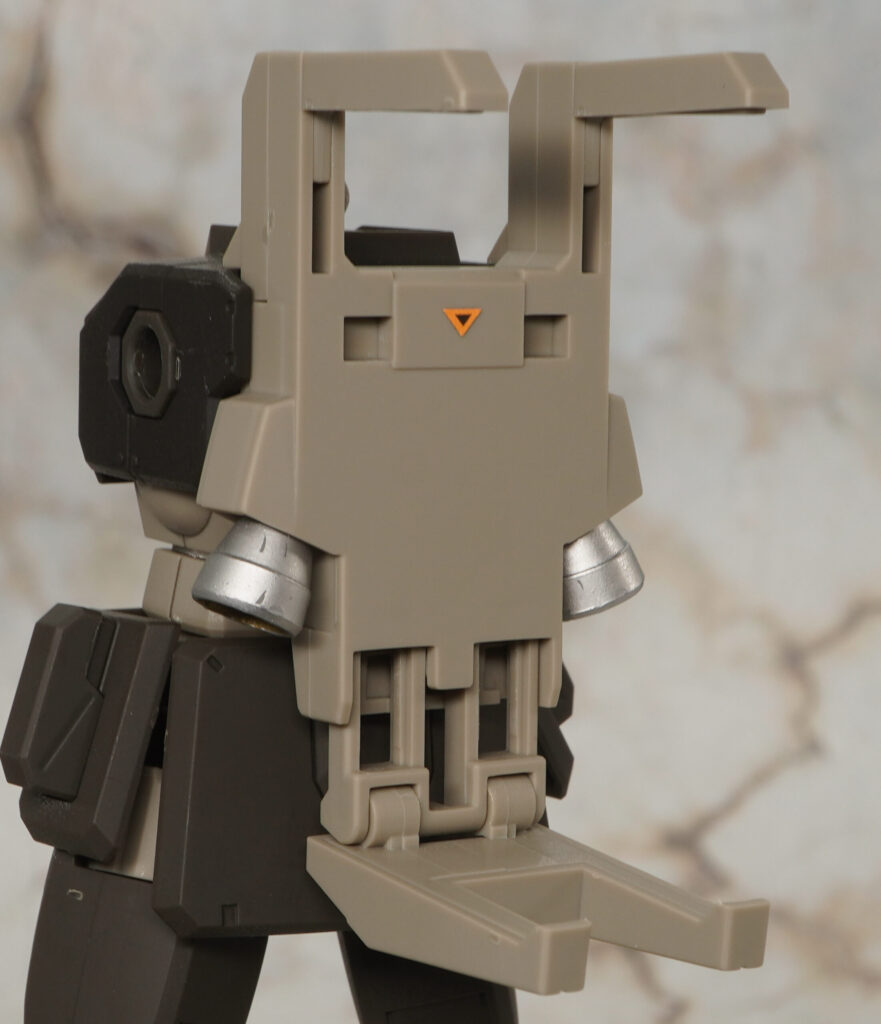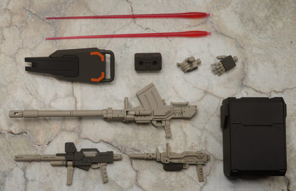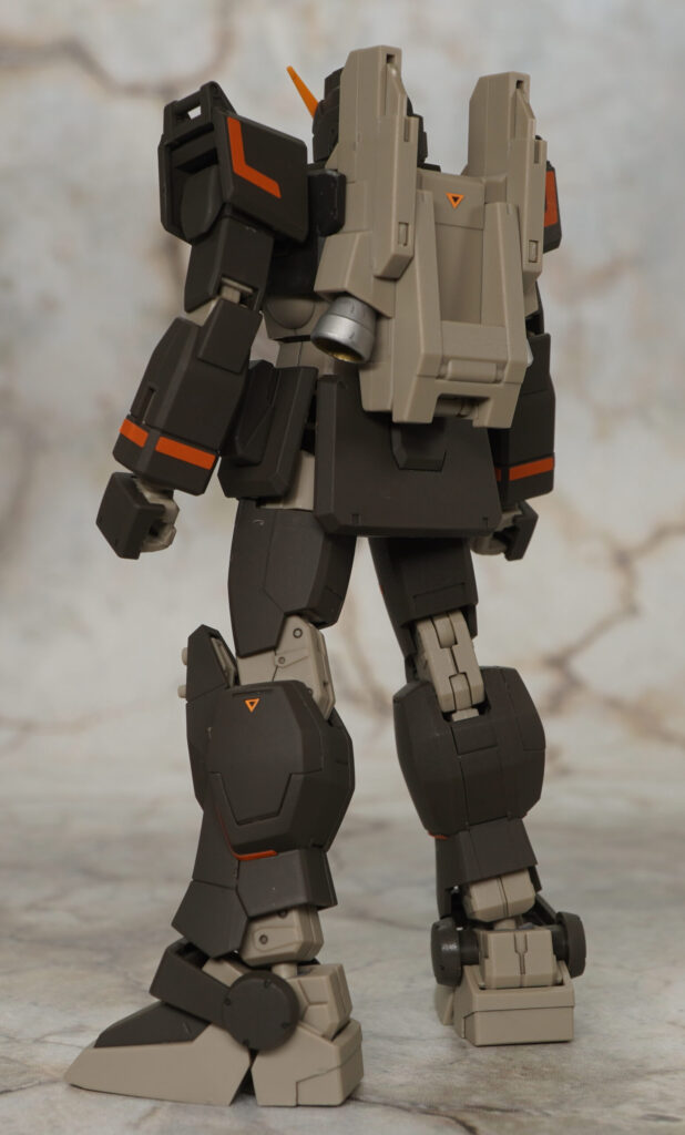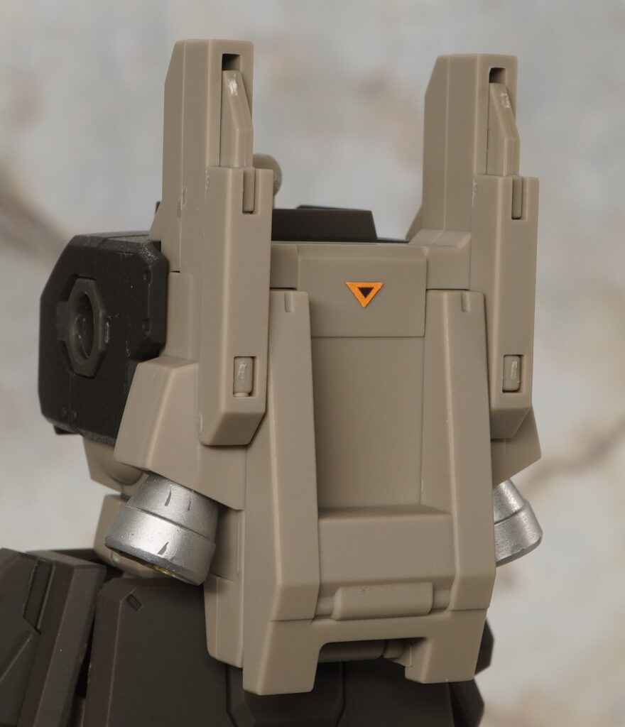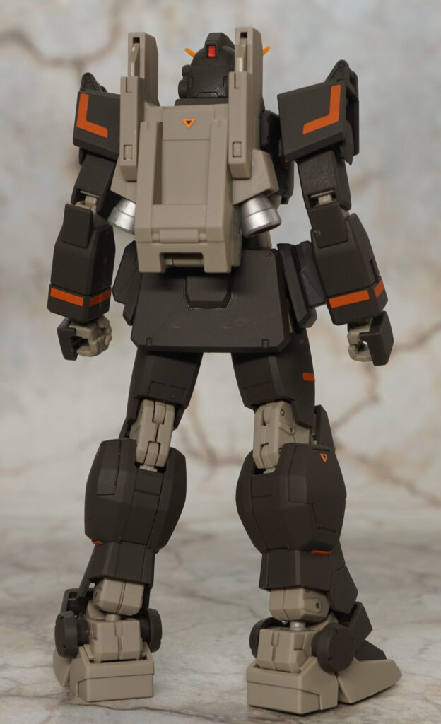 キット的には2018年にHGUC化されたリニューアル版陸戦型ガンダムの色違いなのですが、他のガンプラと互換を持たせてミキシングできるよう肩関節のボール軸径が変わってたり、背部ウェポンコンテナラックを接続するための延長パーツが新たに付属。